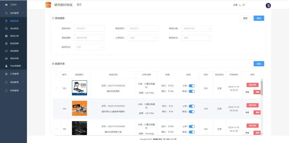 本系统是基于SpringBoot和Vue等技术栈实现的一个健身器材商城系统,它适用于B2C、单商户、自营商城模式,支持私域流量运营和闭环交易,能够满足个性化健身器材消费场景,可以有效降低商家的运营成本,提高销售转化率,同时提升用户购物的便捷性和满意度,实现商家与消费者的双赢。整体来看,本系统能够实现健身器材的在线交易完整业务流程,具备较高的实用价值和推广潜力。