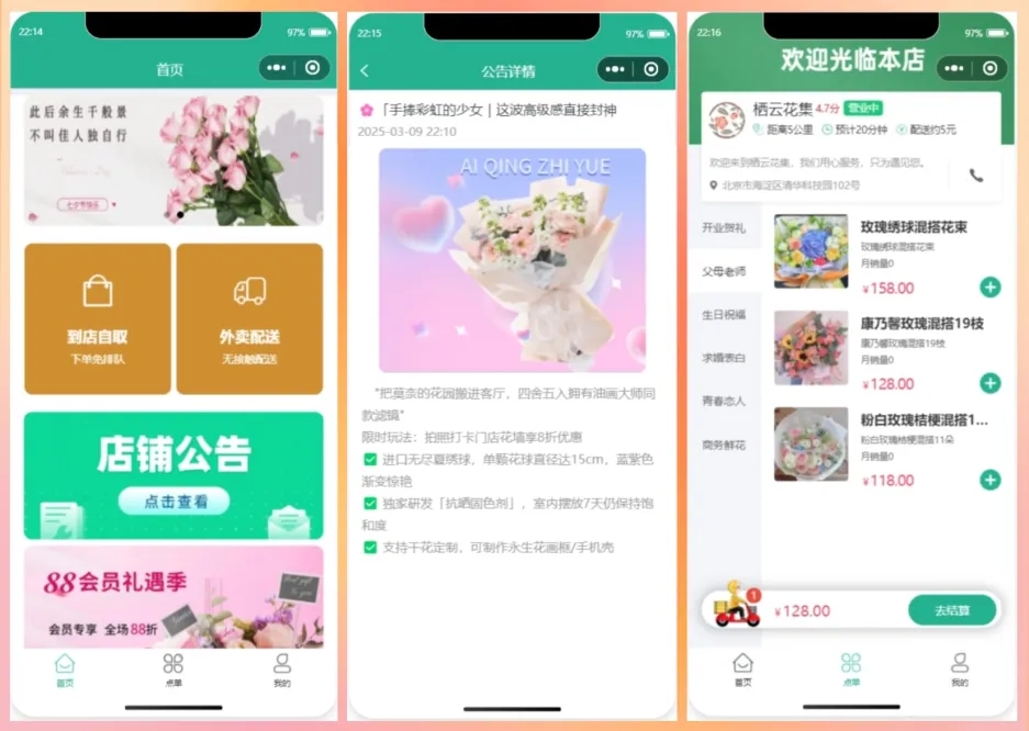 本项目是基于 SpringBoot + Vue + UniAPP + MySQL + Redis 等技术栈开发的一款鲜花商城小程序,本系统适用于O2O、单商户、自营商城场景,完美契合私域流量变现闭环交易使用。明人不说暗话,本项目魔改自黑马苍穹外卖项目,修复了众多Bug,加入了一系列新功能,全新的UI风格。