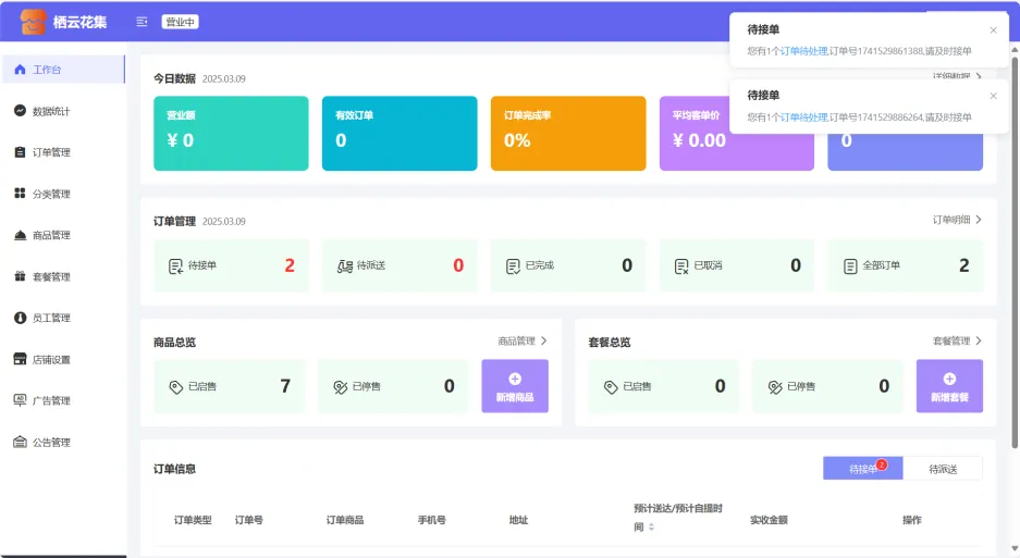 本项目魔改自黑马苍穹外卖项目,修复了众多Bug,加入了一系列新功能(自提、店铺、广告、公告等),全新的UI风格。