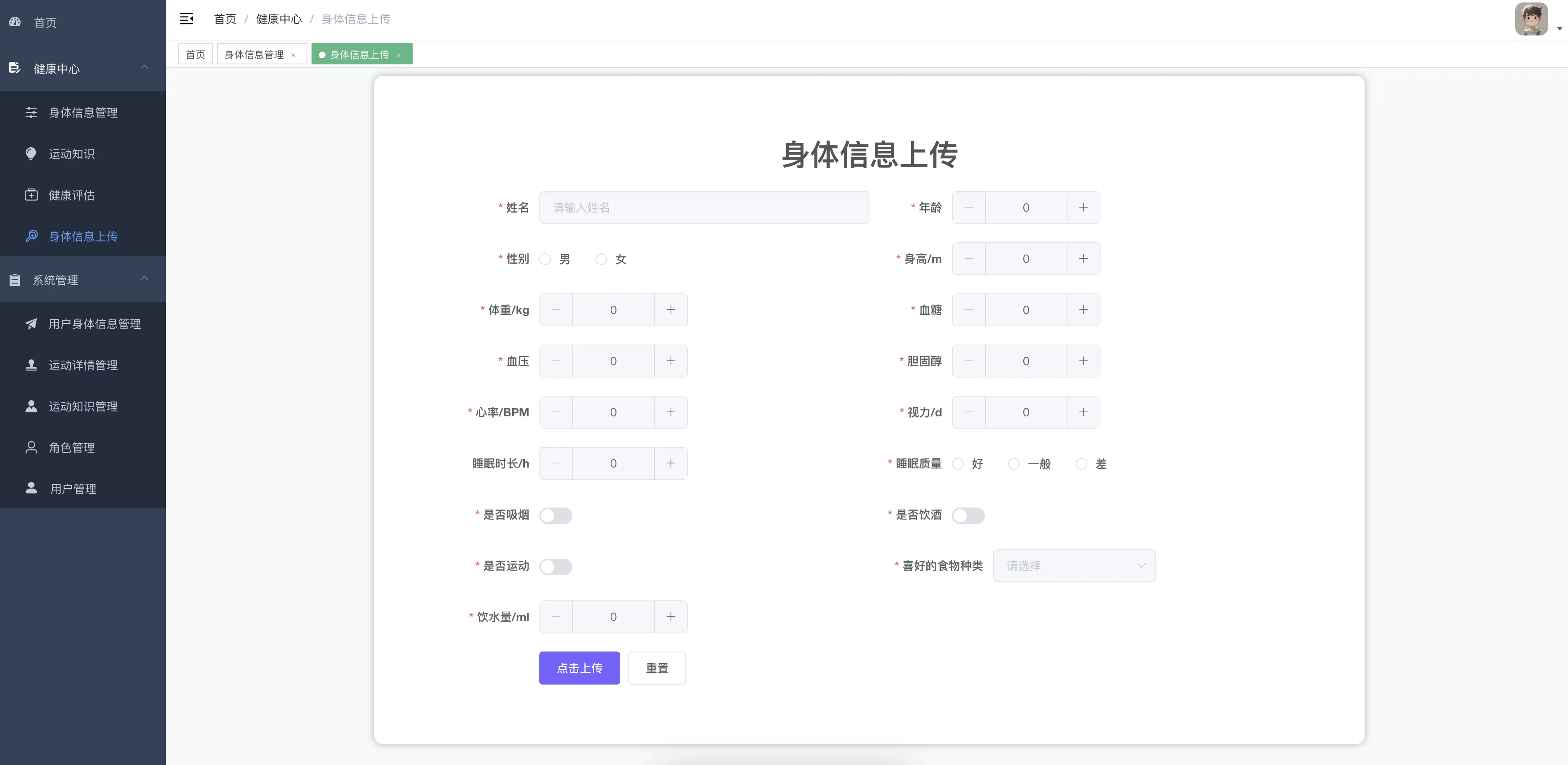 049基于SpringBoot+Vue的个人健康管理系统、智能健康信息监测系统、健康数据管理系统
