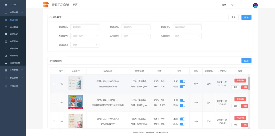 本系统是基于SpringBoot和Vue等技术栈实现的一个母婴用品商城系统,它适用于B2C、单商户、自营商城模式,支持私域流量运营和闭环交易,能够满足个性化母婴用品消费场景,可以有效降低商家的运营成本,提高销售转化率,同时提升用户购物的便捷性和满意度,实现商家与消费者的双赢。整体来看,本系统能够实现母婴用品的在线交易完整业务流程,具备较高的实用价值和推广潜力。