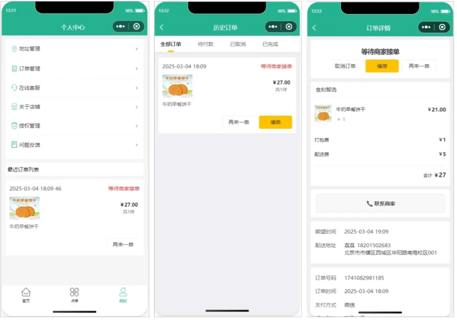 本项目是基于 SpringBoot + Vue + UniAPP + MySQL + Redis 等技术栈开发的一款零食订购外卖小程序,本系统适用于O2O、单商户、自营商城场景,完美契合私域流量变现闭环交易使用。明人不说暗话,本项目魔改自黑马苍穹外卖项目,修复了众多Bug,加入了一系列新功能,全新的UI风格。