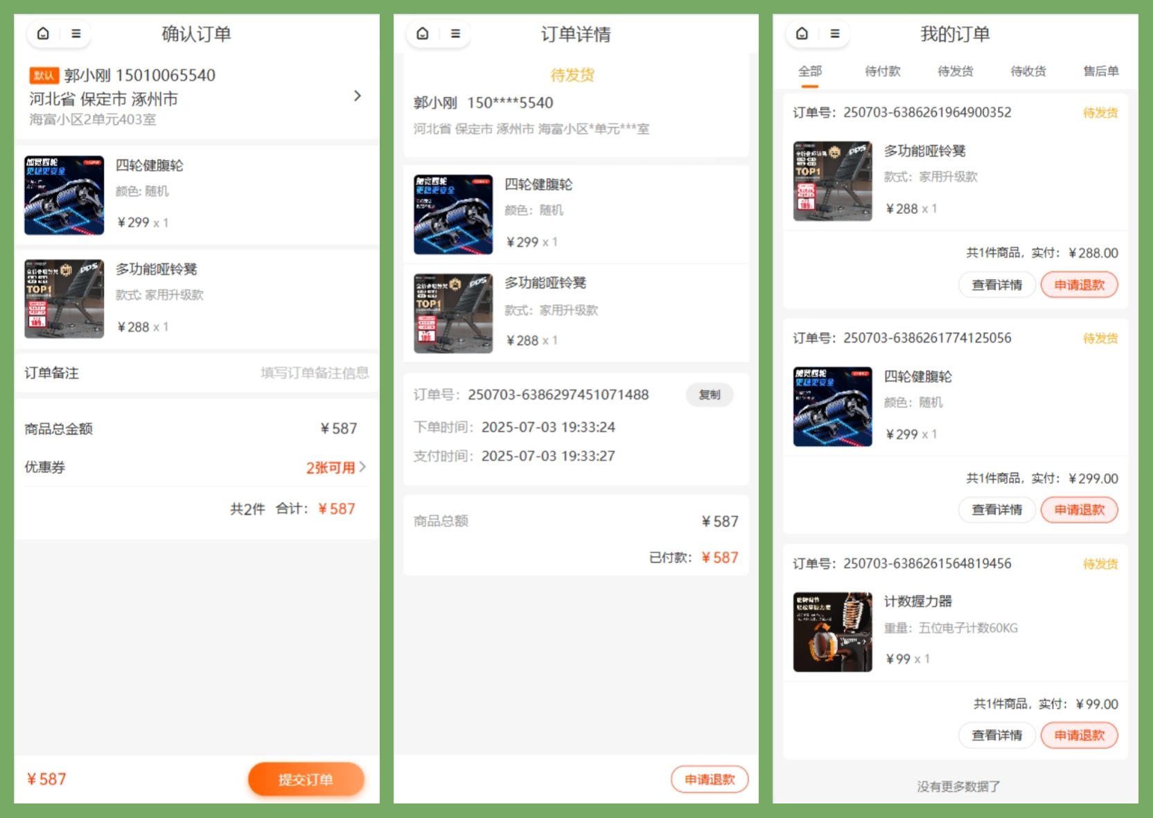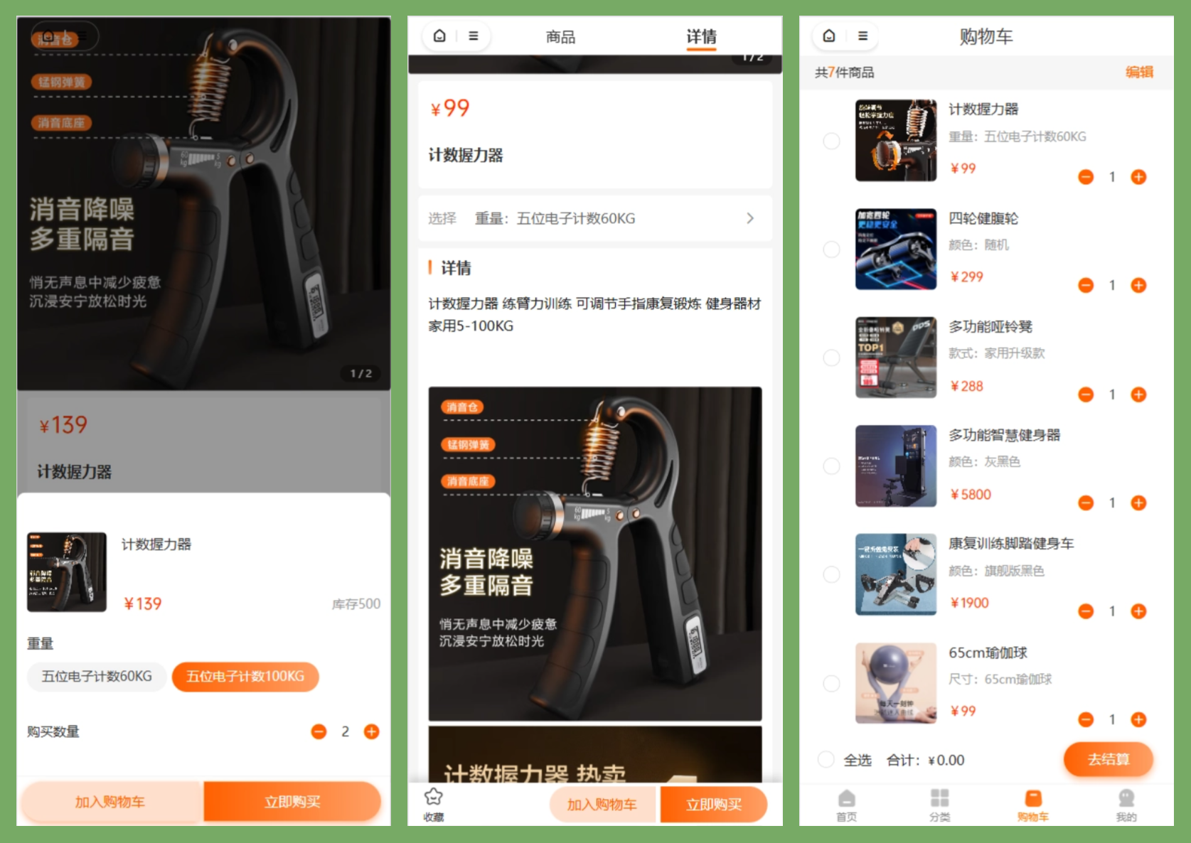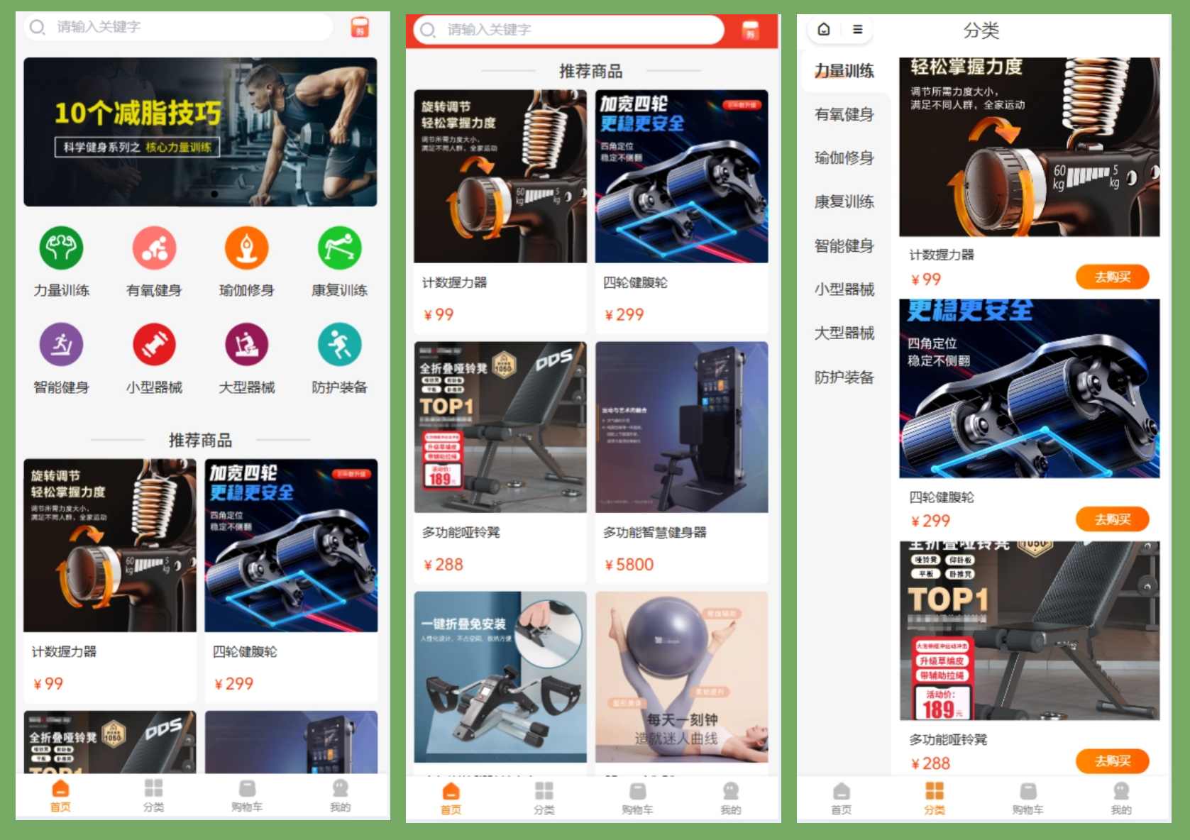 本系统专注于健身器材细分品类,功能聚焦、用户体验优良,适用于健身器材品牌商、电商创业者作为线上商城平台的开发范例,具备良好的教学参考价值和商业落地潜力。