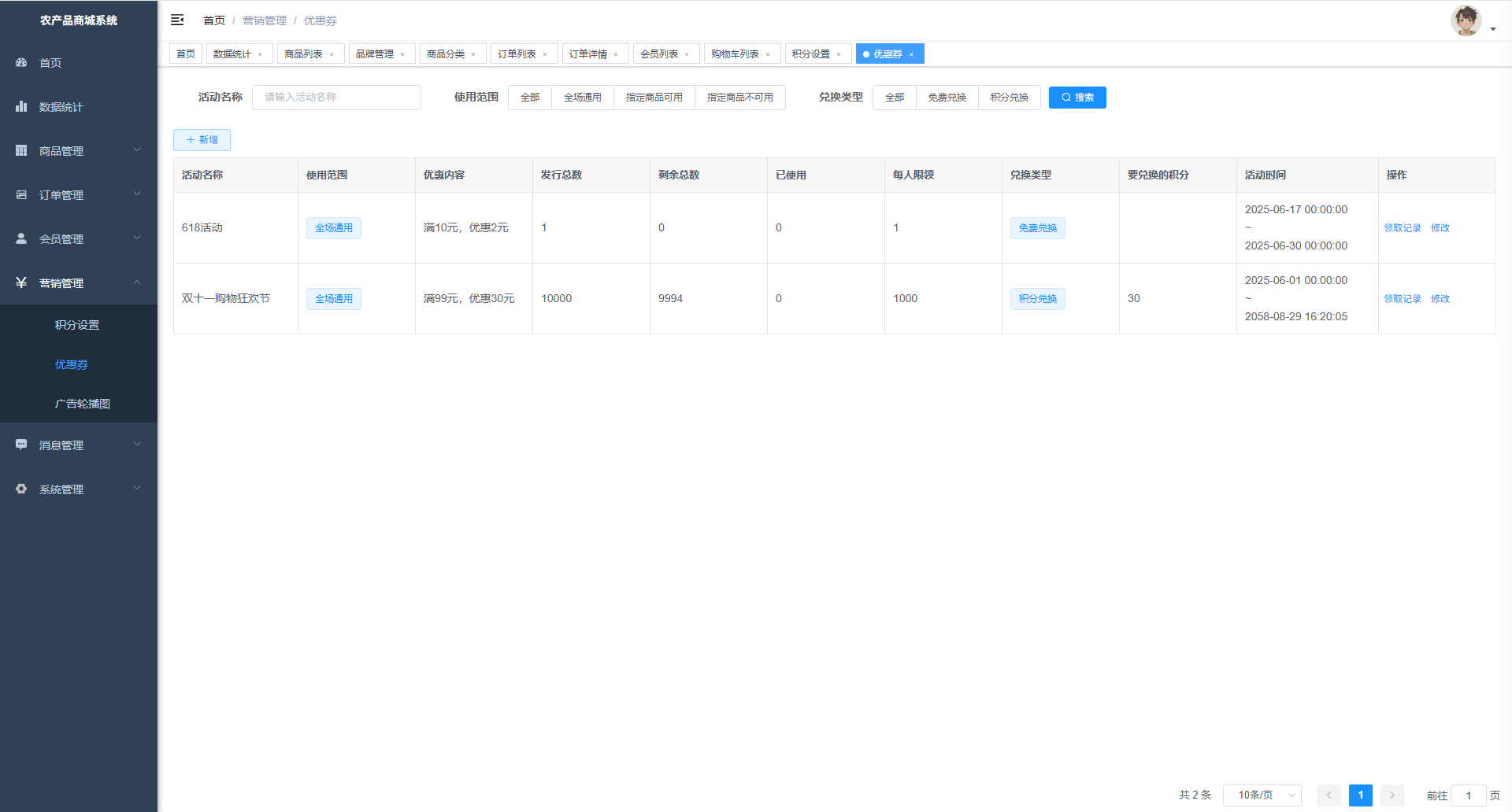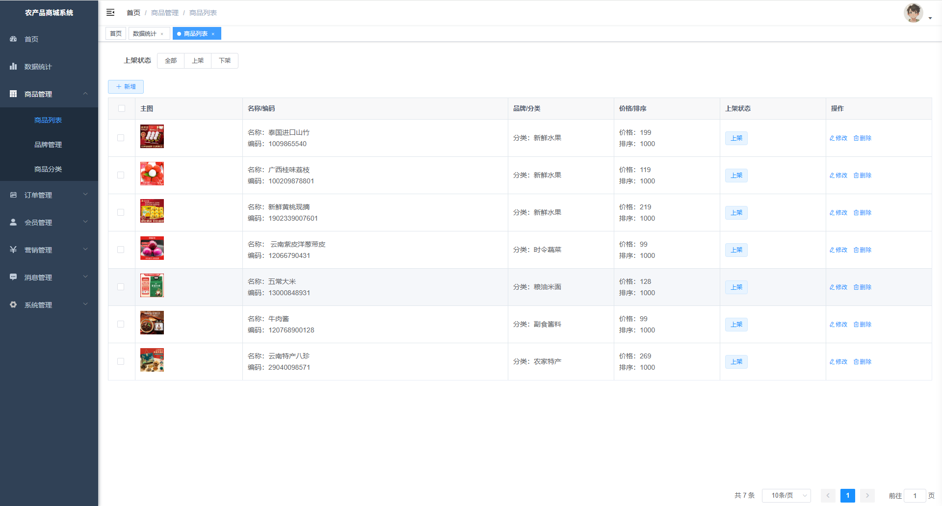 072基于SpringBoot+Vue+uni-app的农产品商城系统、微信小程序农产品商城系统、H5农产品电商系统、B2C农产品销售平台、农产品类目自营商城