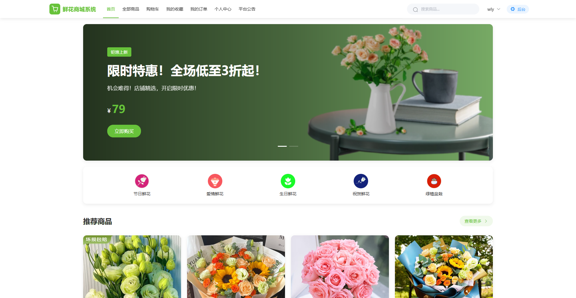 120基于SpringBoot3+Vue3的鲜花商城系统、鲜花电商平台、B2C鲜花销售平台、鲜花垂直电商系统、协同过滤推荐算法