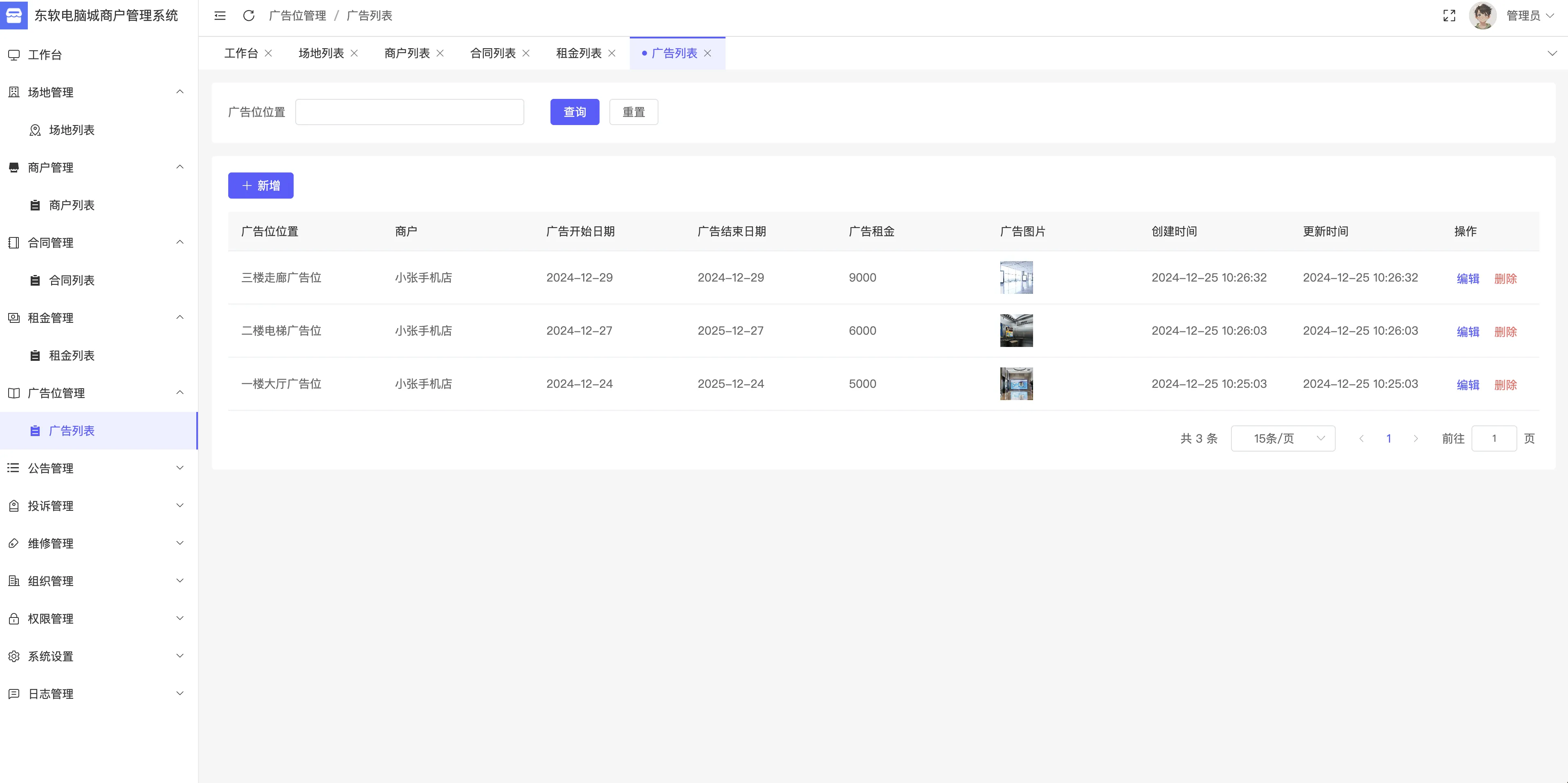 001基于SpringBoot+Vue3的电脑城管理系统、电脑城租金管理系统、电脑城商户管理系统、电脑城租赁管理系统