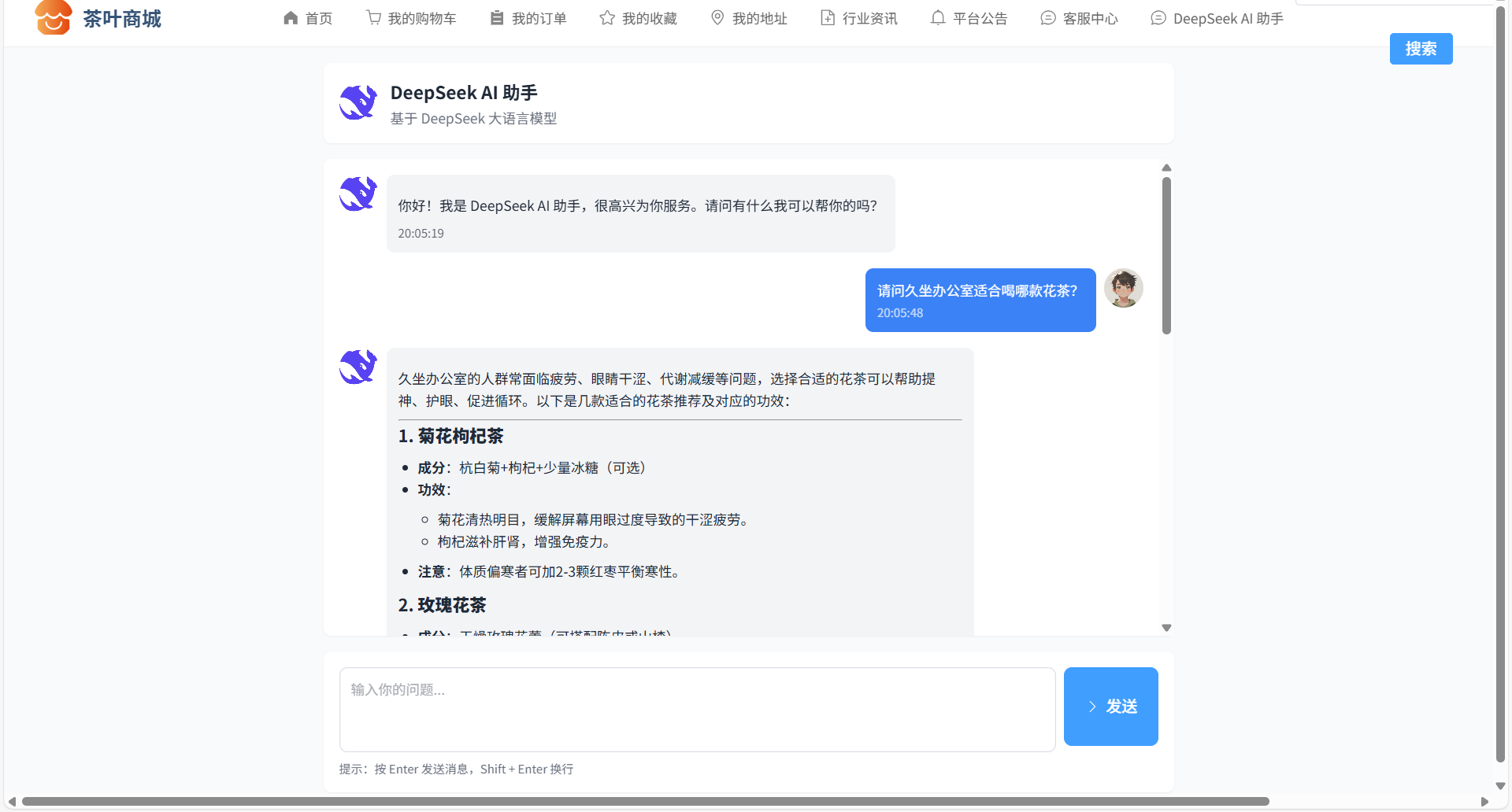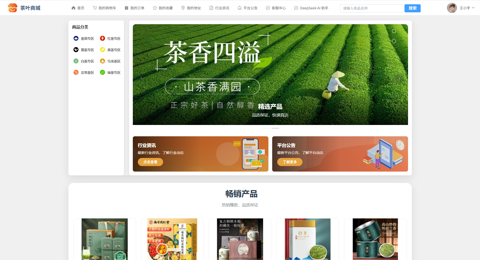 084基于SpringBoot3+Vue3的茶叶商城系统、B2C商城系统、垂直类电商平台、多商户电商系统、智能推荐商城系统、AI导购商城系统、协同过滤推荐算法、DeepSeek AI助手、在线客服聊天、商品多规格