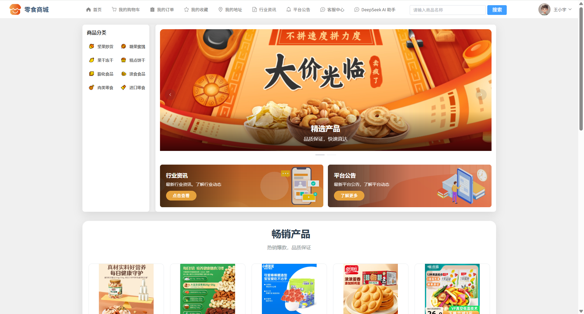 089基于SpringBoot3+Vue3的零食商城系统、B2C商城系统、垂直类电商平台、多商户电商系统、智能推荐商城系统、AI导购商城系统、协同过滤推荐算法、DeepSeek AI助手、在线客服聊天、商品多规格