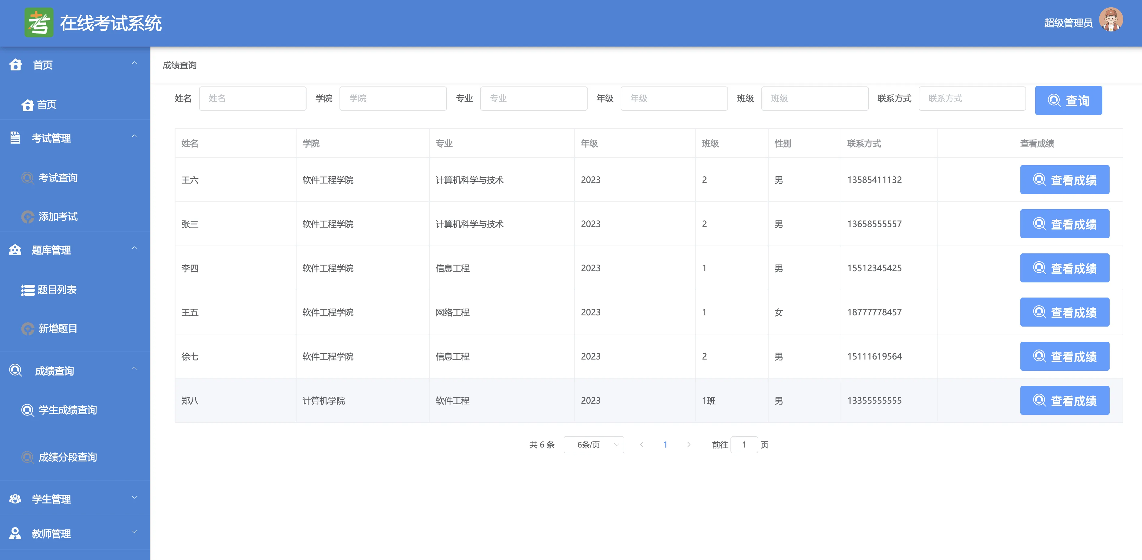 - 学生成绩查询: 查看所有学生的考试成绩,支持成绩统计和分析。
