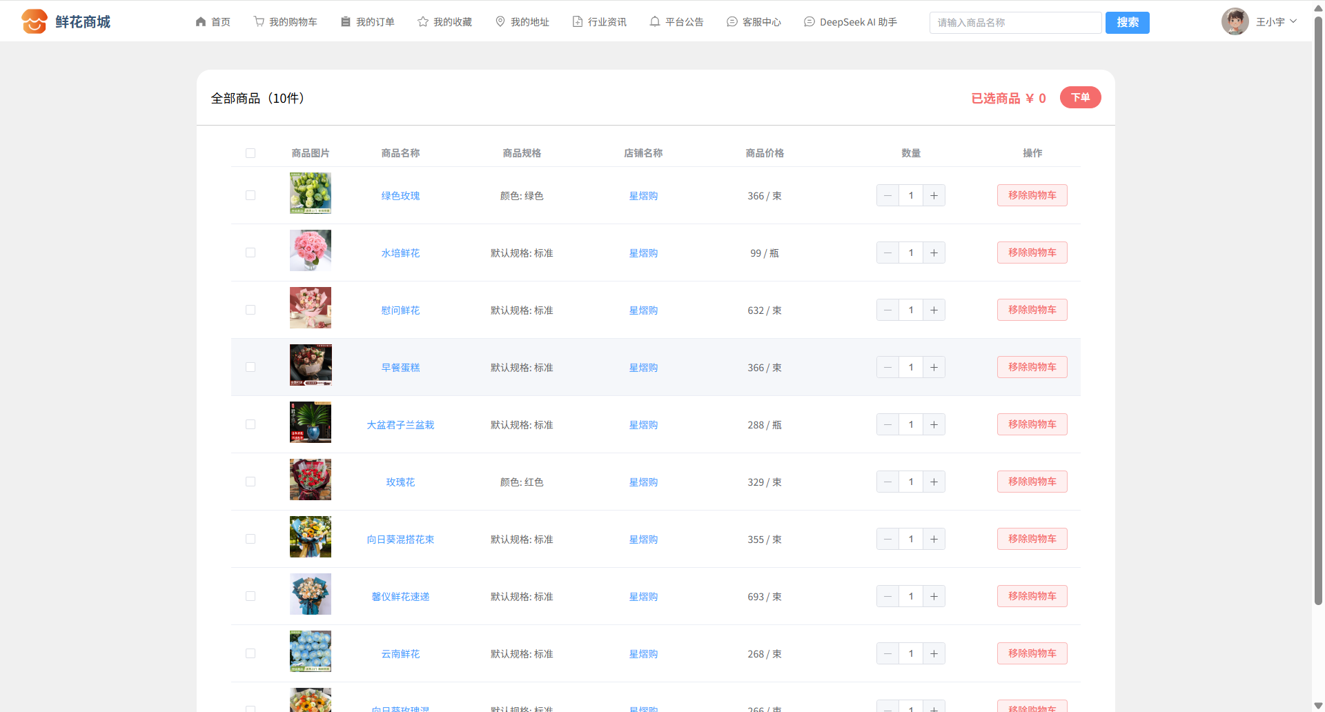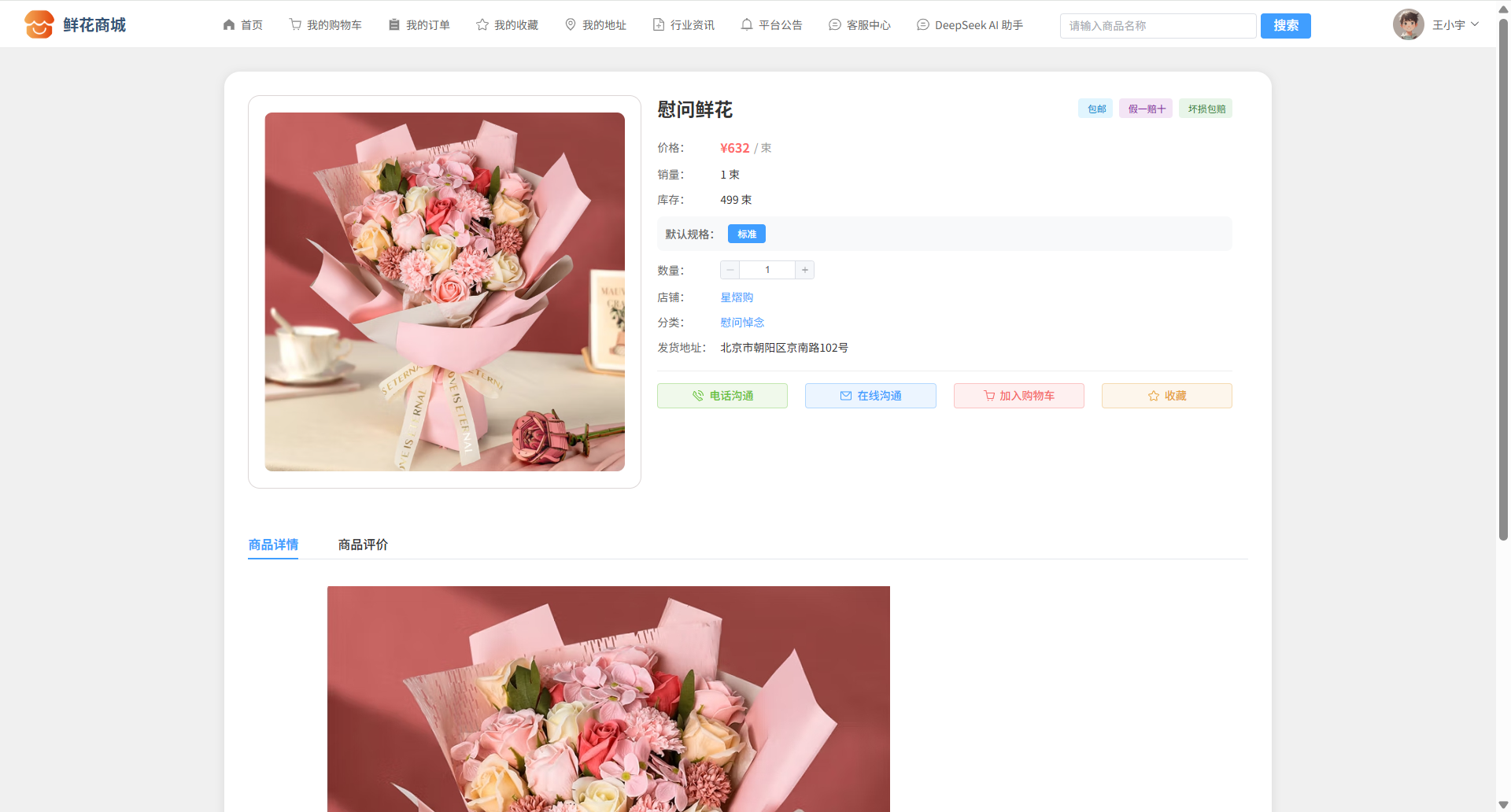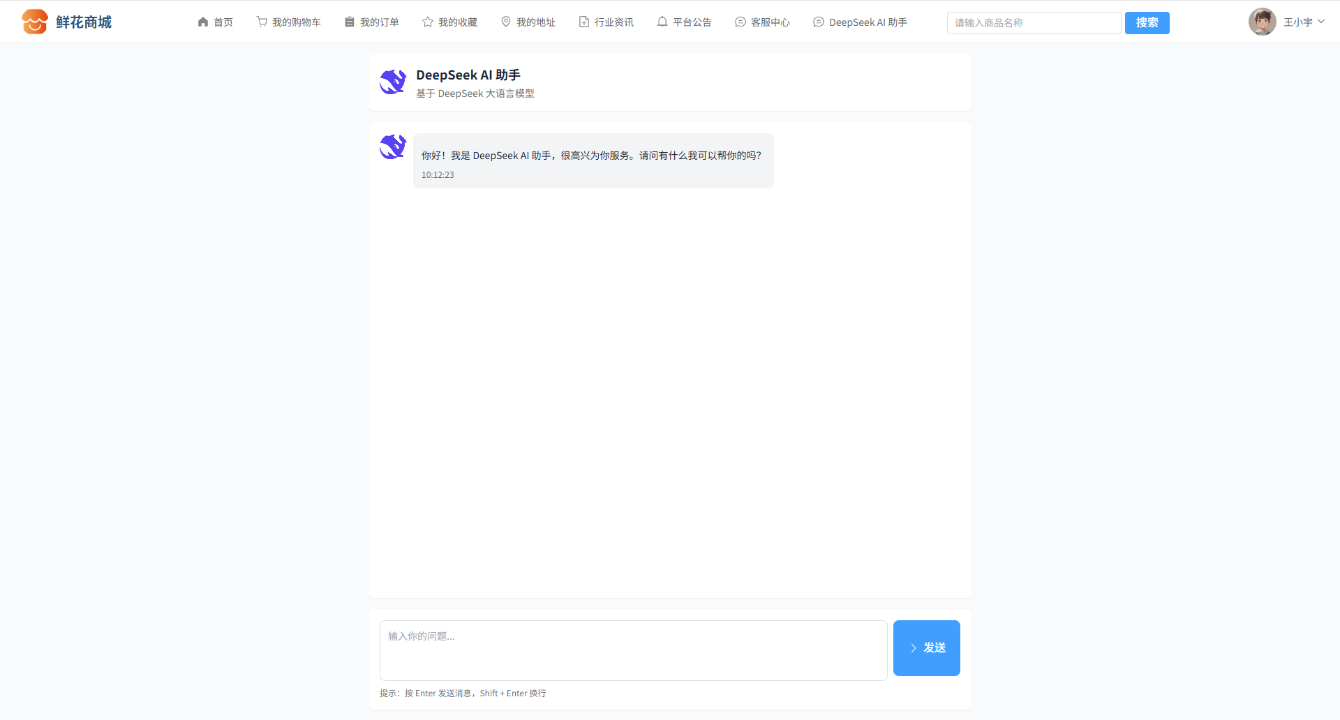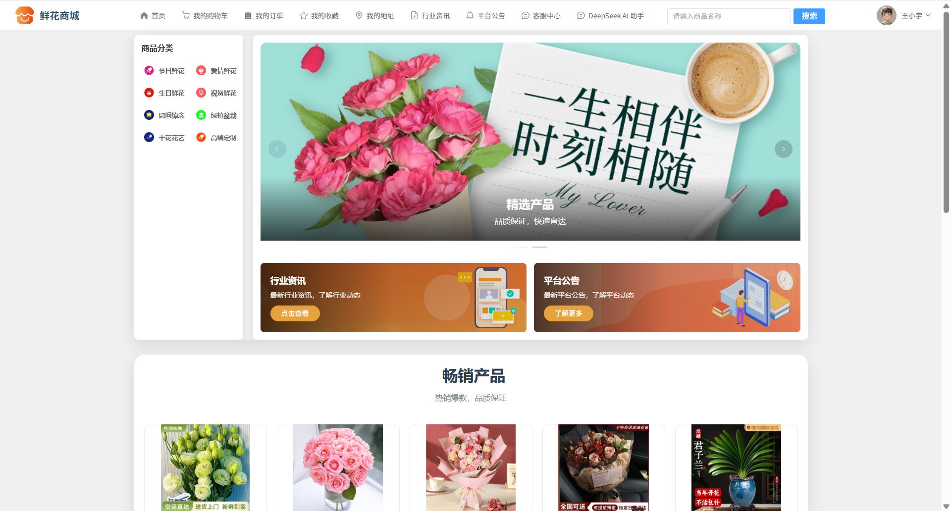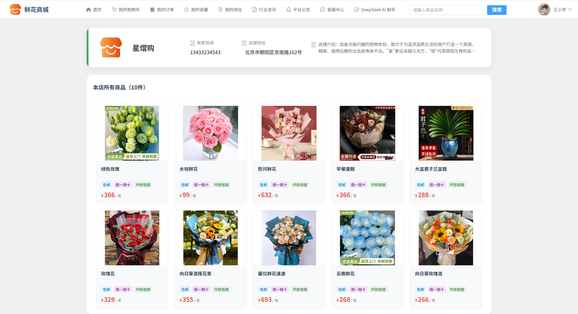 090基于SpringBoot3+Vue3的鲜花商城系统、B2C商城系统、垂直类电商平台、多商户电商系统、智能推荐商城系统、AI导购商城系统、协同过滤推荐算法、DeepSeek AI助手、在线客服聊天、商品多规格