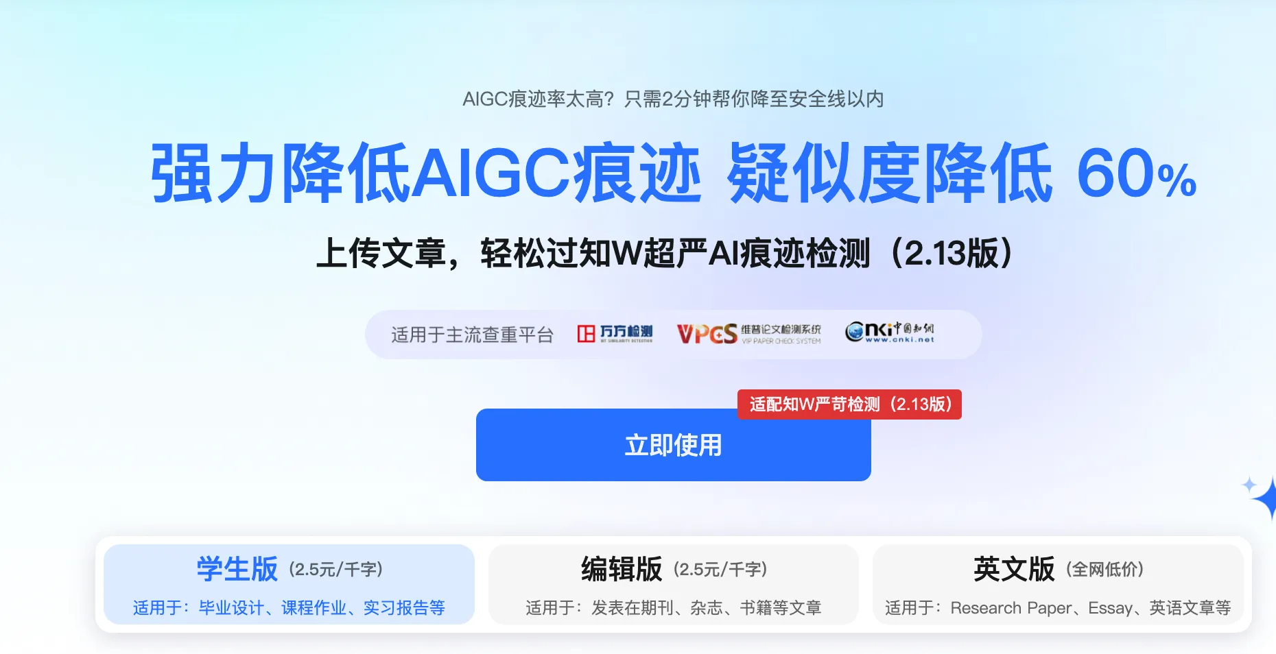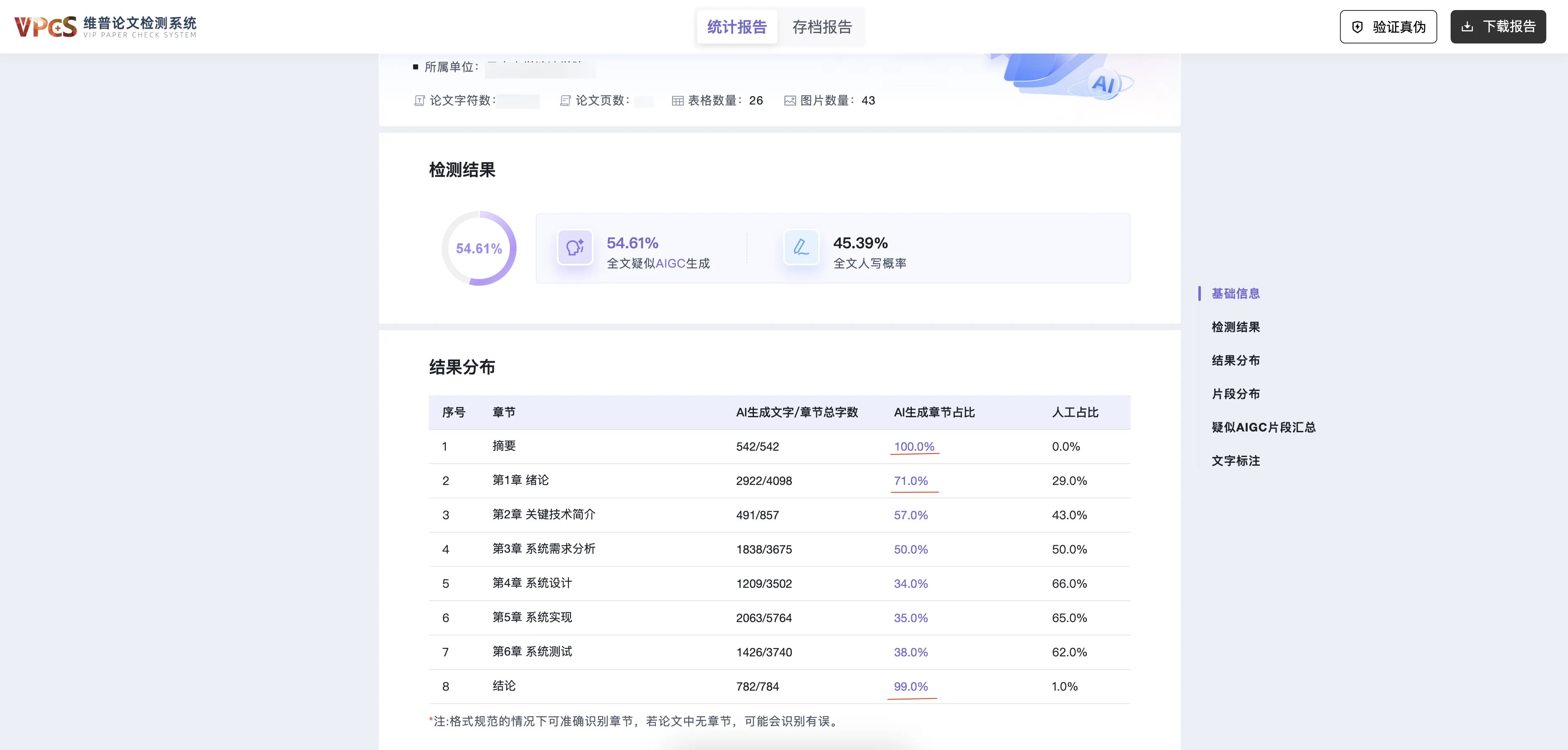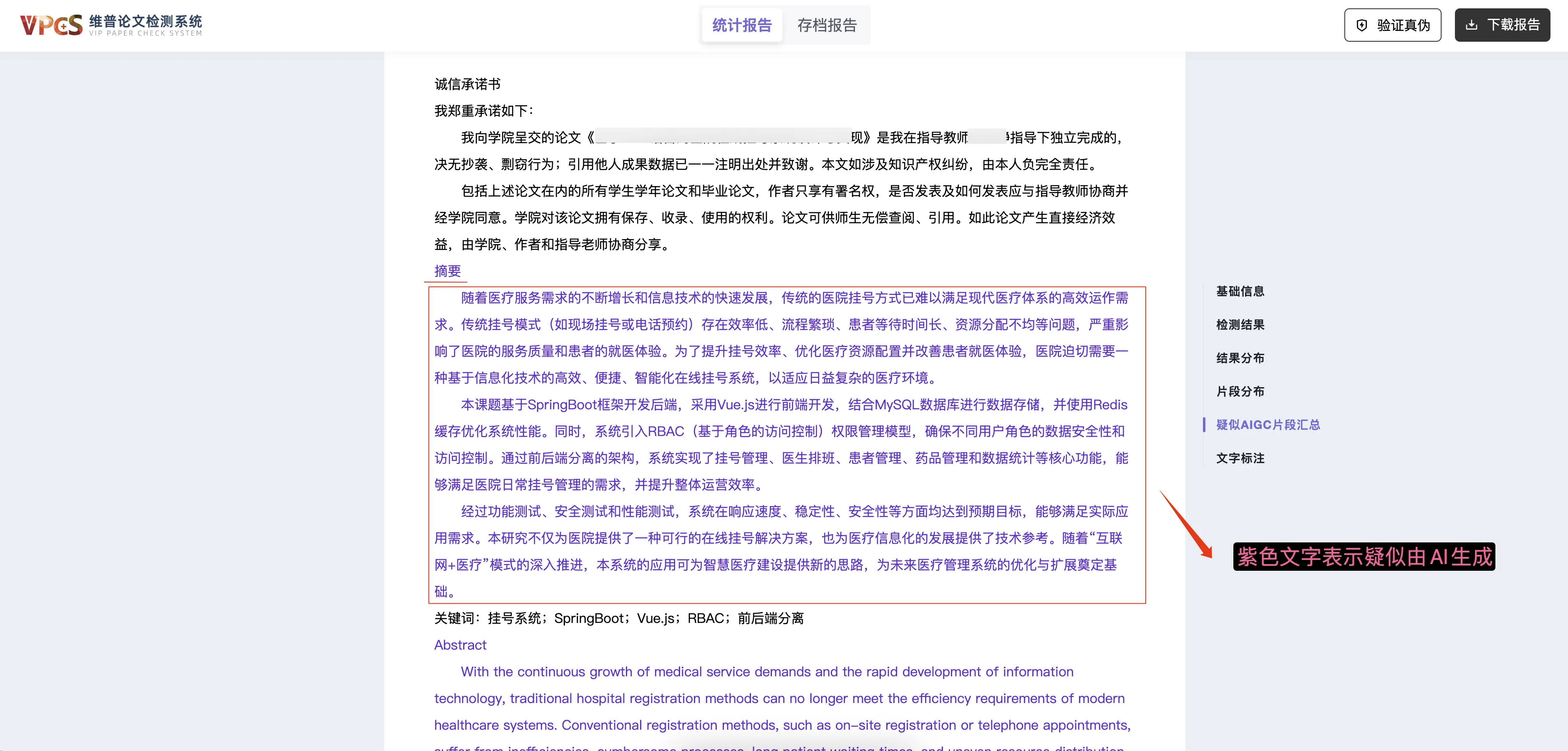 下面会重点讨论论文查重与AIGC检测两项内容,其中AIGC检测是新增项目,它主要用来检测你的论文是否包含AI生成内容。下面截图来自维普平台: