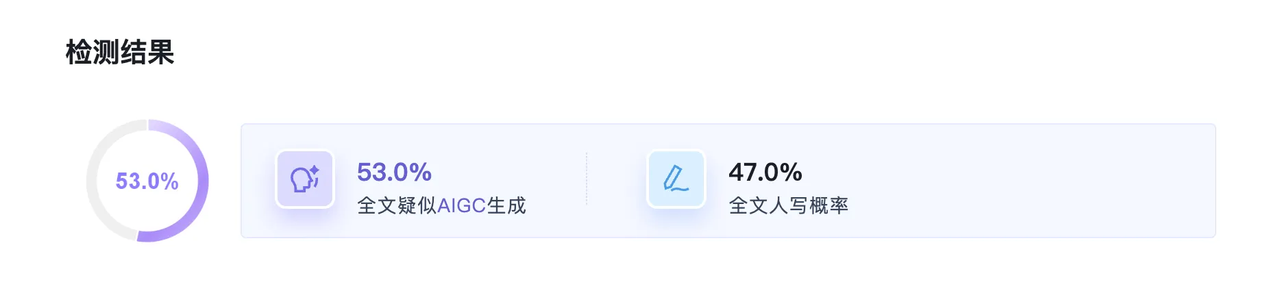 - 如果一段内容,比如中文摘要,其中70%是自己编写的,30%是由AI编写或润色,最终很可能导致被AIGC检测认定为整段内容由AI编写,太无语了(血的教训,看下面案例分享)。