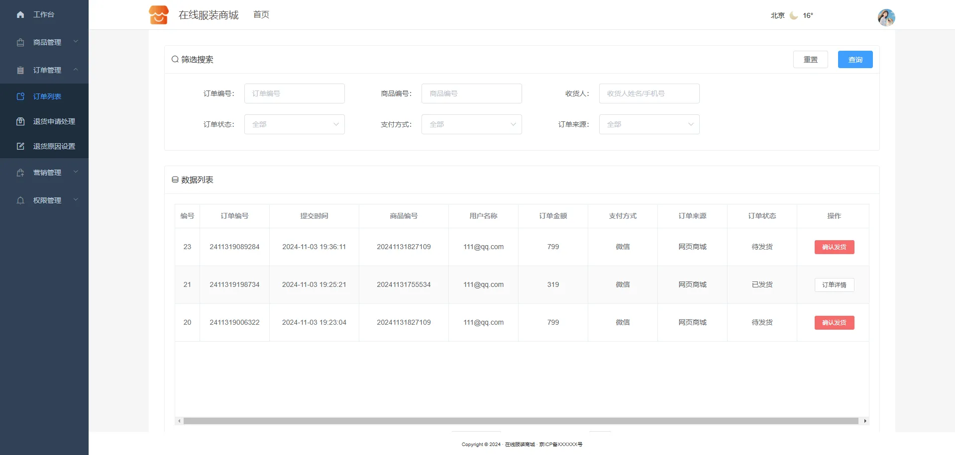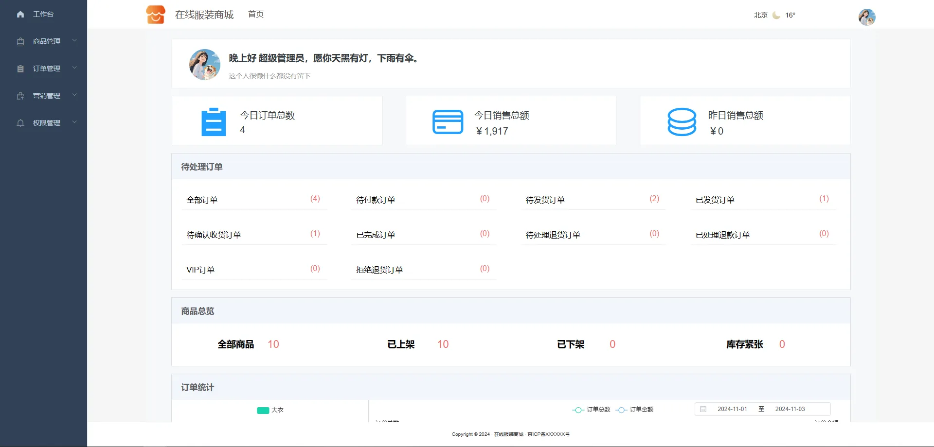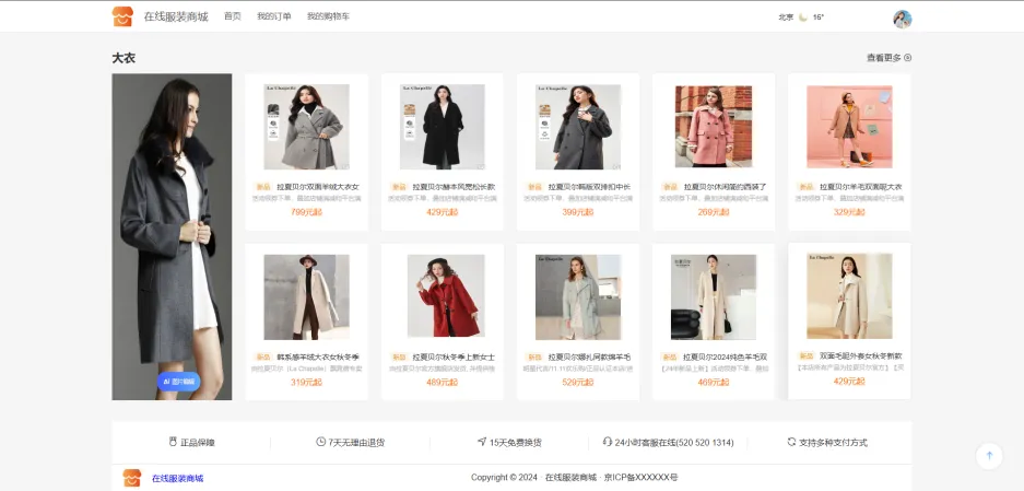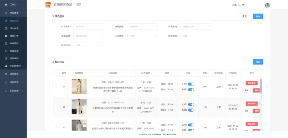 本系统是基于SpringBoot和Vue等技术栈实现的一个在线服装商城系统,它适用于B2C、单商户、自营商城模式,支持私域流量运营和闭环交易,能够满足个性化服装消费场景,可以有效降低商家的运营成本,提高销售转化率,同时提升用户购物的便捷性和满意度,实现商家与消费者的双赢。整体来看,本系统能够实现服装的在线交易完整业务流程,具备较高的实用价值和推广潜力。