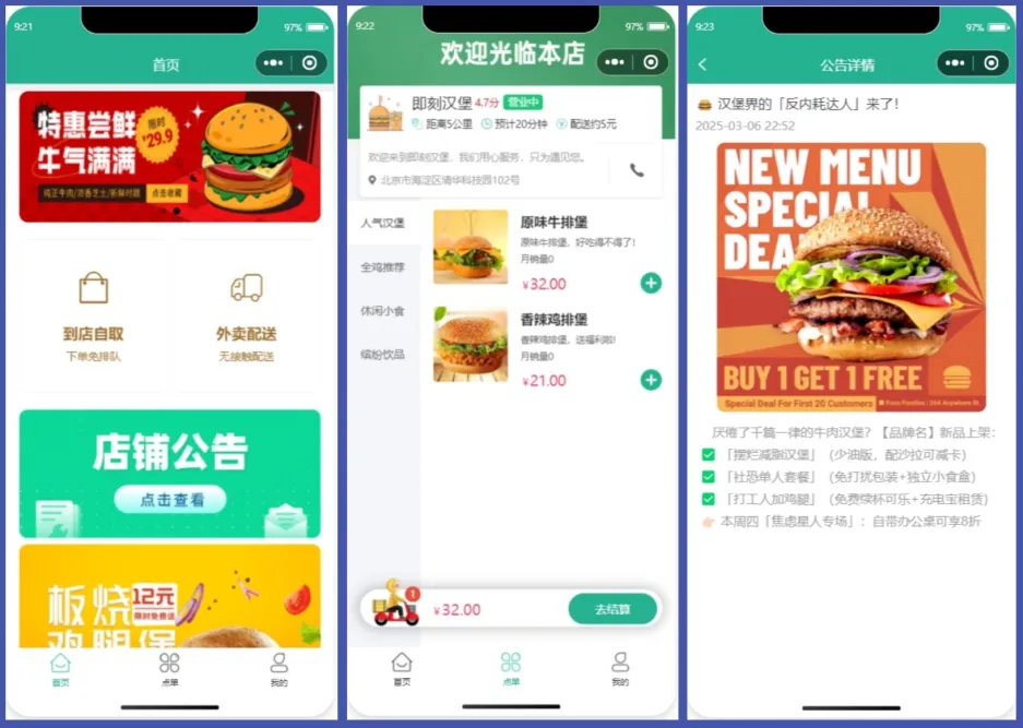 本项目是基于 SpringBoot + Vue + UniAPP + MySQL + Redis 等技术栈开发的一款汉堡外卖点单小程序,本系统适用于O2O、单商户、自营商城场景,完美契合私域流量变现闭环交易使用。明人不说暗话,本项目魔改自黑马苍穹外卖项目,修复了众多Bug,加入了一系列新功能,全新的UI风格。