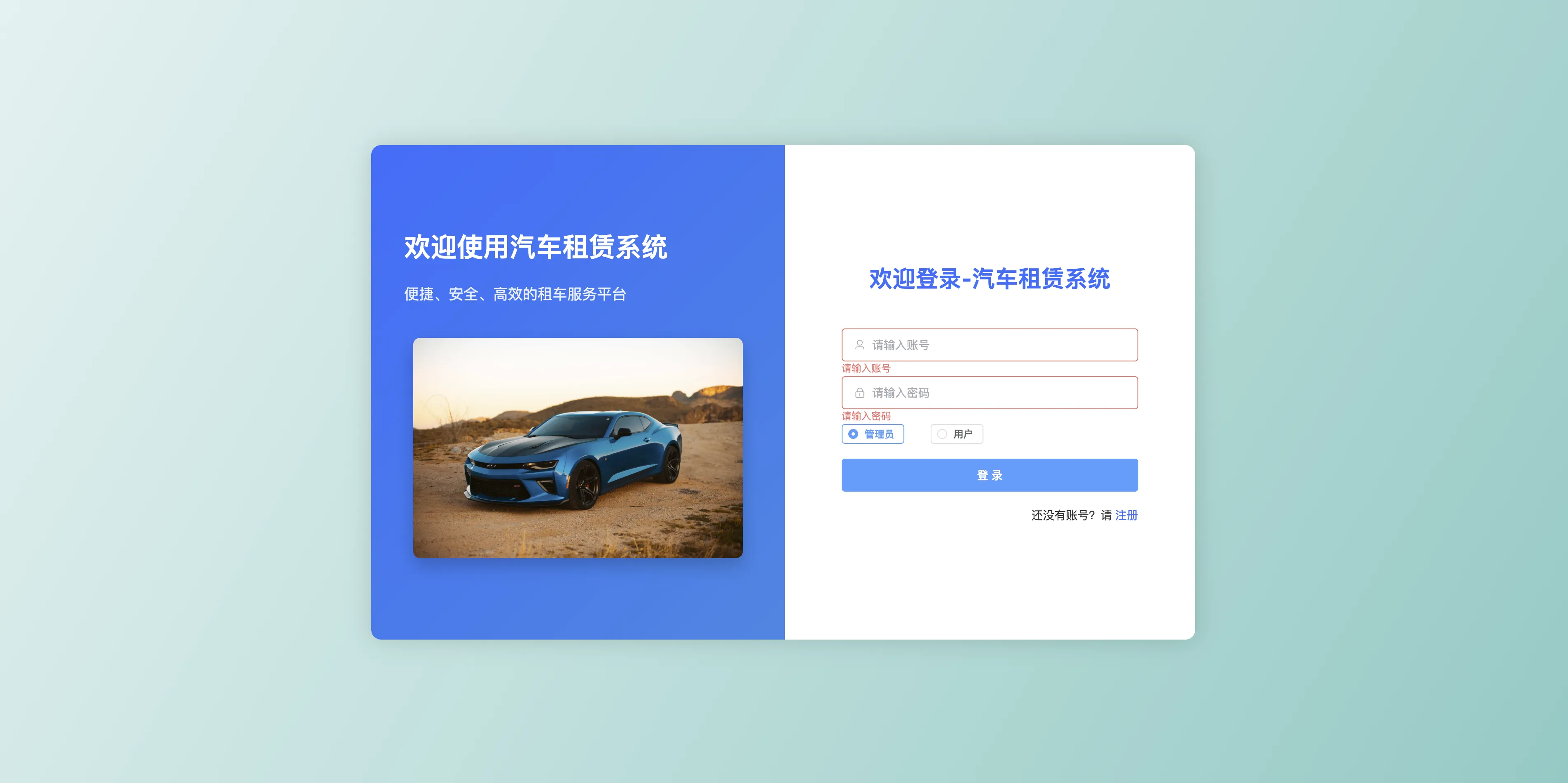 本系统是一套基于 SpringBoot3 + Vue3 技术栈开发的现代化汽车租赁管理平台,采用 B/S 架构与前后端分离开发模式,使用 MySQL 作为主数据库。本系统面向汽车租赁业务场景,支持用户与管理员双角色登录操作,满足平台运营与用户服务的双重需求。