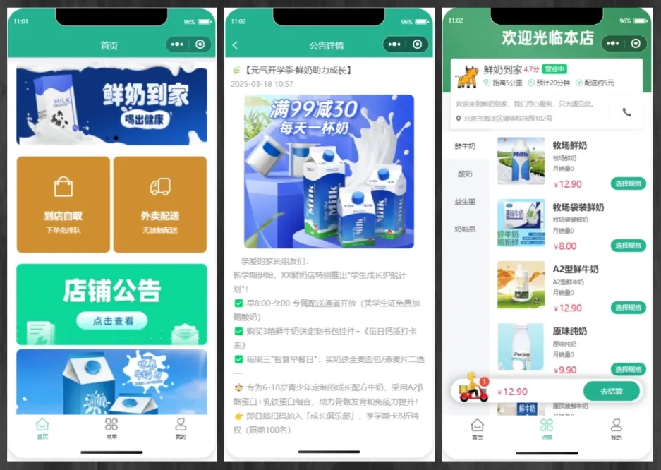 044基于SpringBoot+Vue的O2O模式鲜奶牛奶订购小程序商城系统,微信小程序,乳制品销售电商系统,苍穹外卖