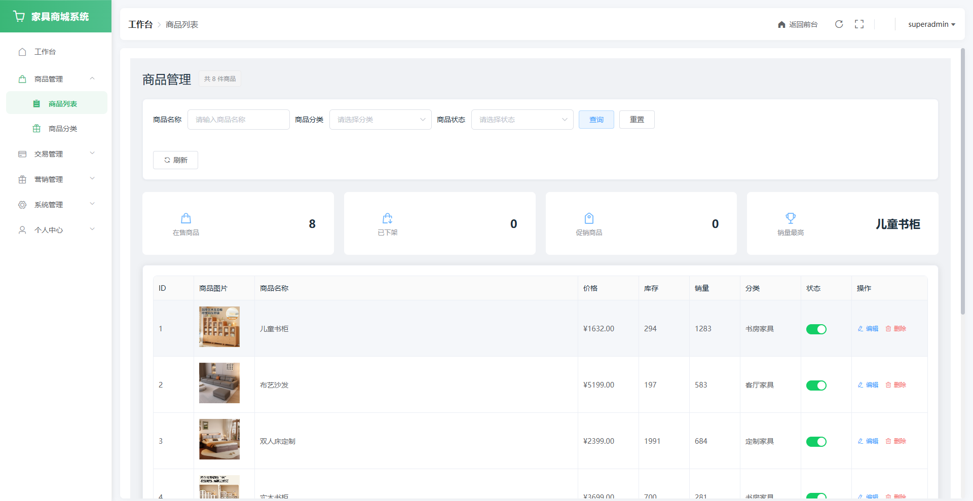 本系统专注于家具品类,功能聚焦、体验优良,适用于家具品牌商、电商创业者作为线上商城平台的开发范例,满足家具电商平台的多样化业务场景,具备良好的教学参考价值和商业落地潜力。