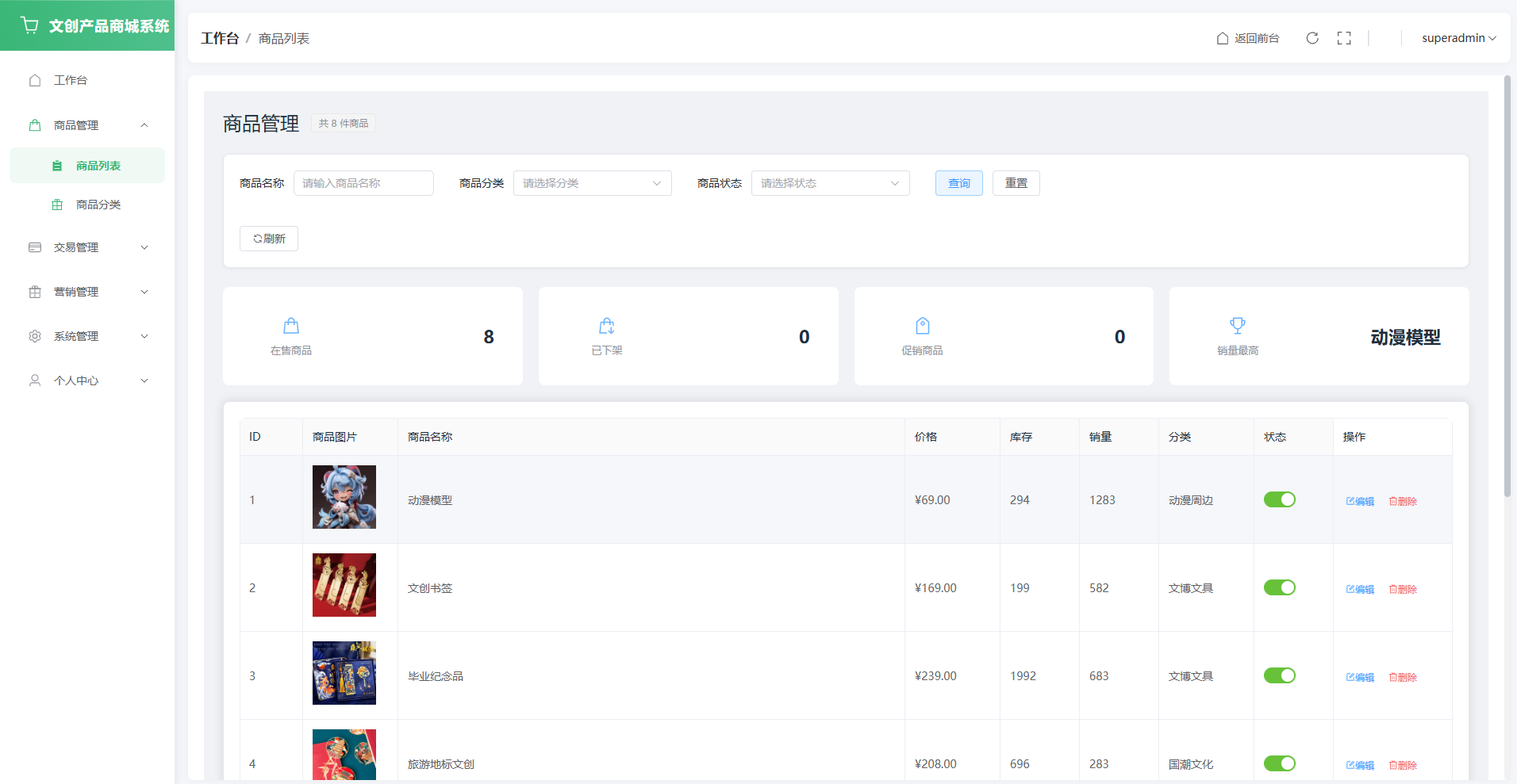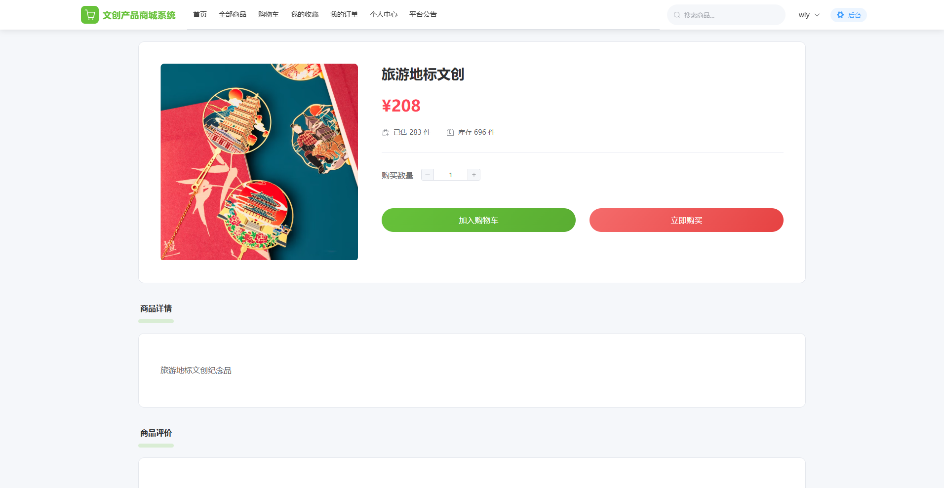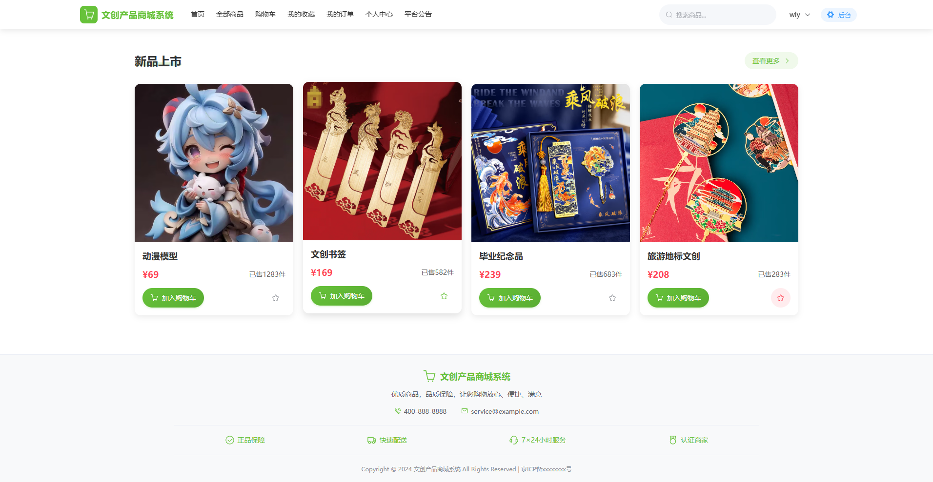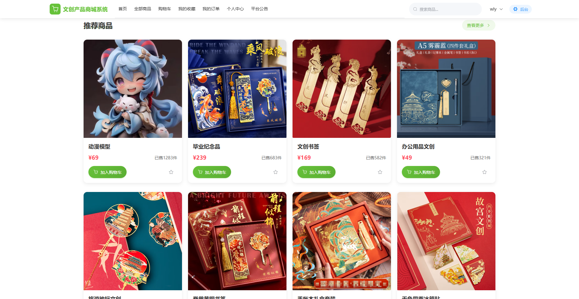 本系统专注于文创产品品类,功能聚焦、体验优良,适用于文创产品品牌商、电商创业者作为线上商城平台的开发范例,满足文创产品电商平台的多样化业务场景,具备良好的教学参考价值和商业落地潜力。