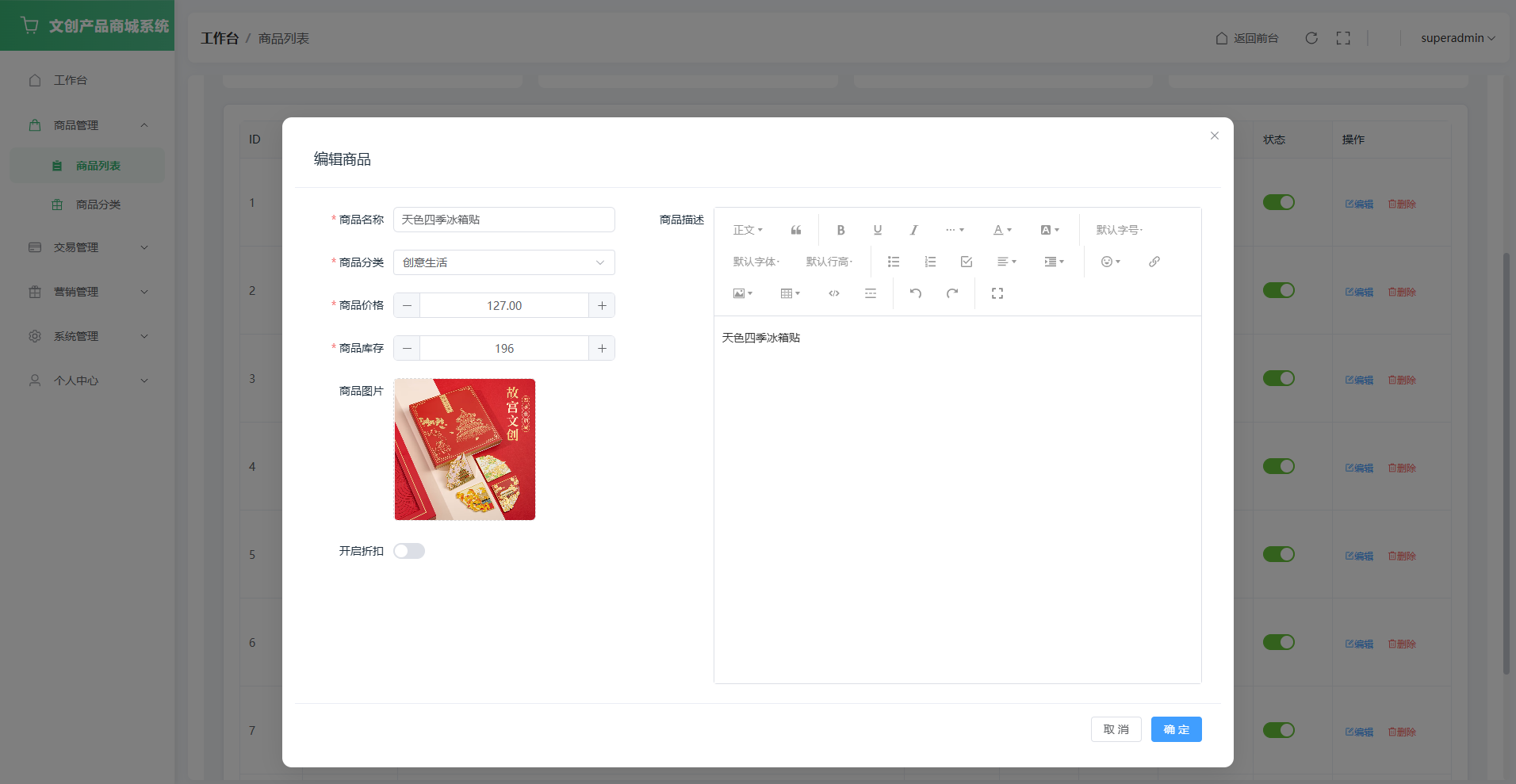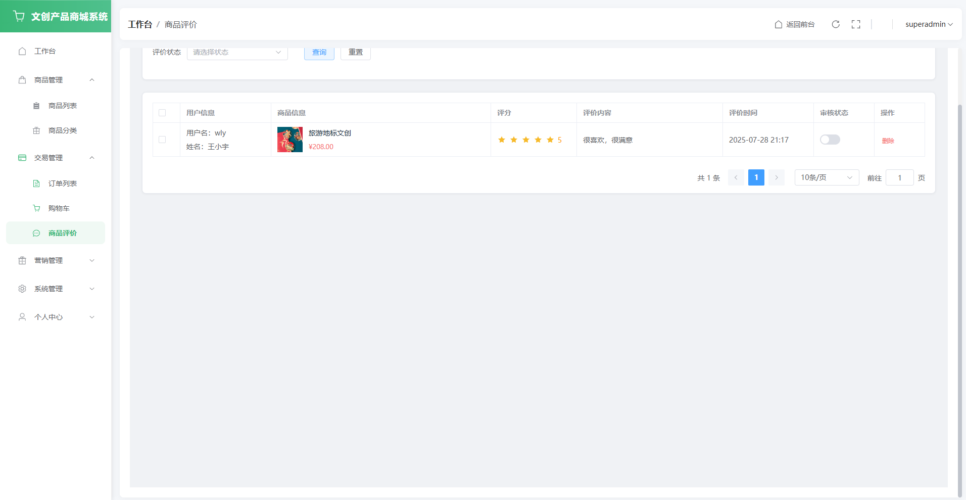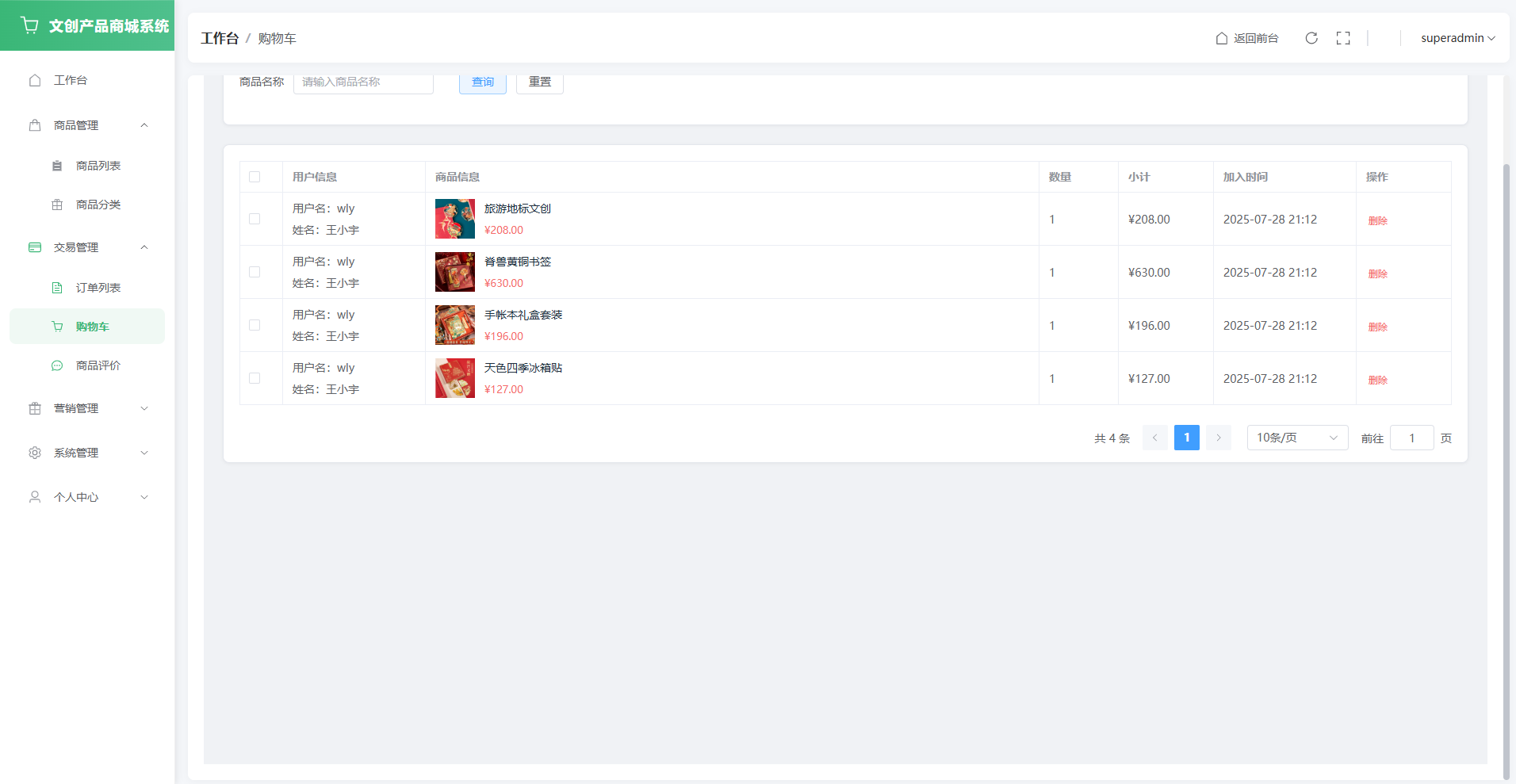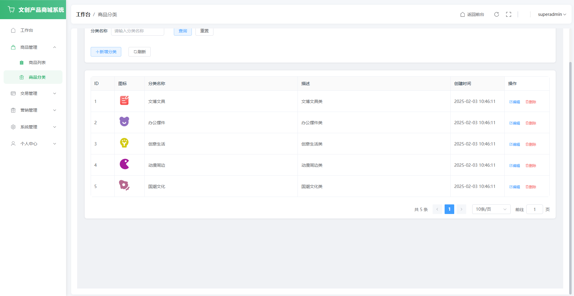 本系统专注于文创产品品类,功能聚焦、体验优良,适用于文创产品品牌商、电商创业者作为线上商城平台的开发范例,满足文创产品电商平台的多样化业务场景,具备良好的教学参考价值和商业落地潜力。