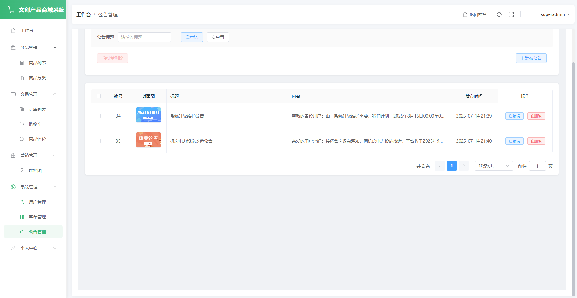 本系统是一款面向文创产品垂直领域的多商户电商平台,采用B/S架构与前后端分离开发模式,整体系统基于Spring Boot3与Vue2技术栈构建,支持浏览器访问,满足文创产品品牌线上销售、管理与服务需求。