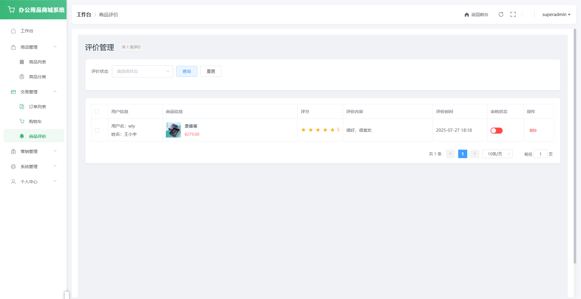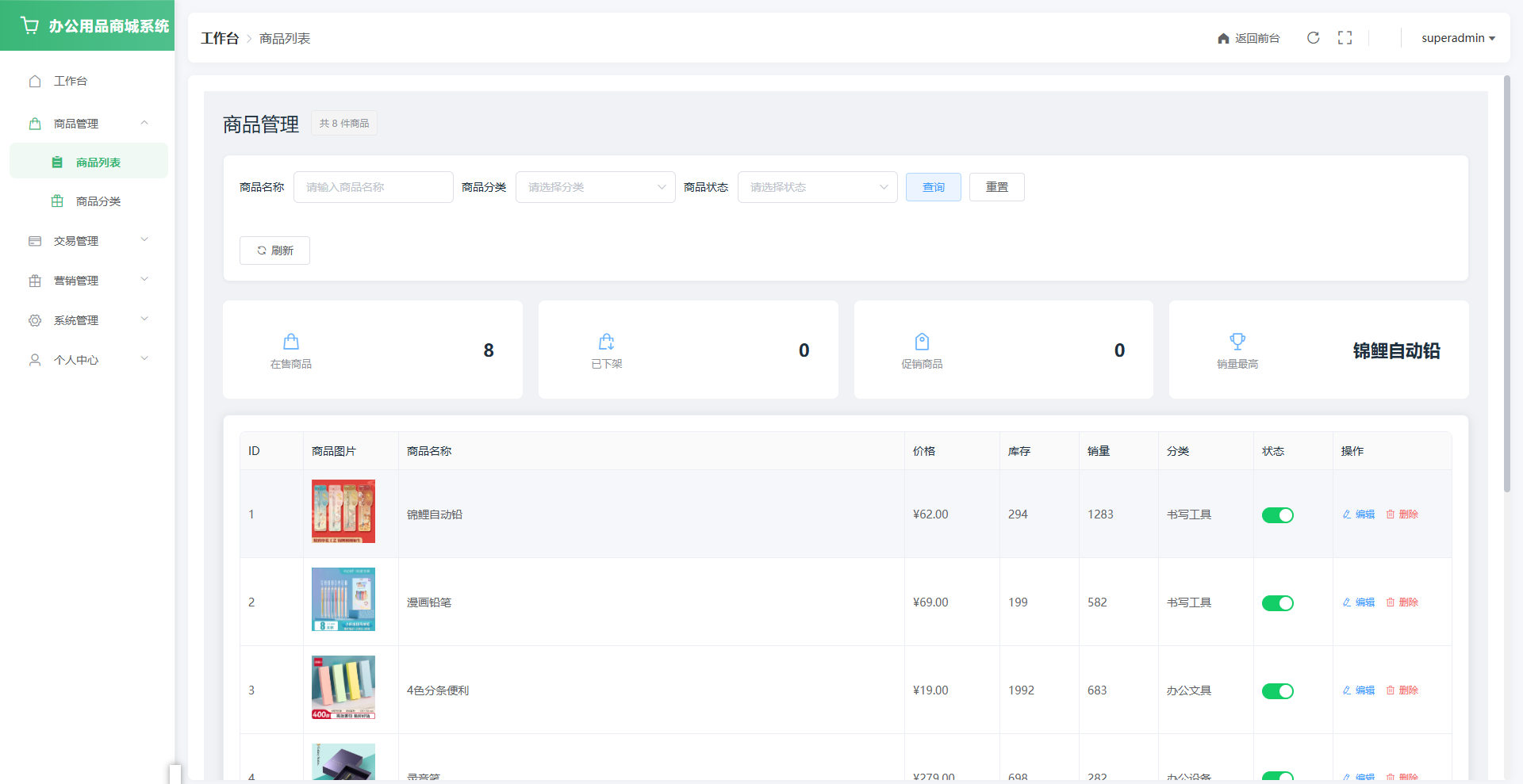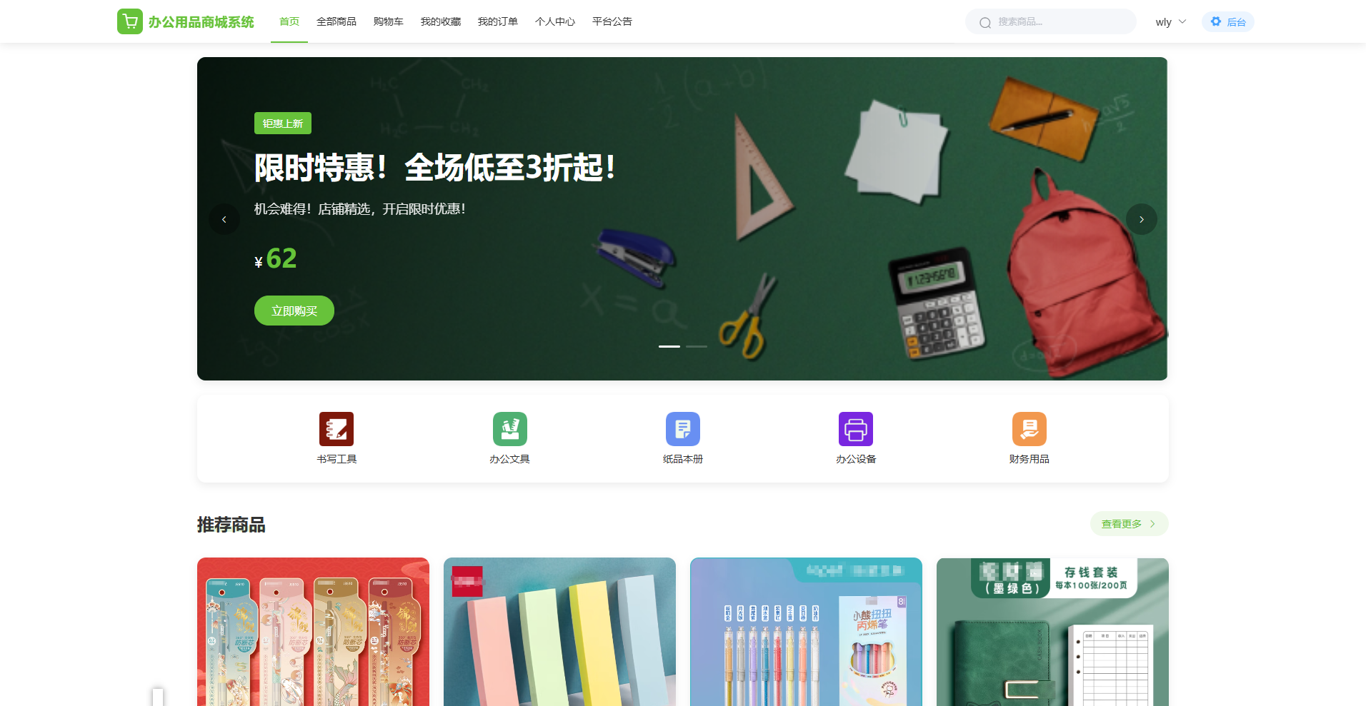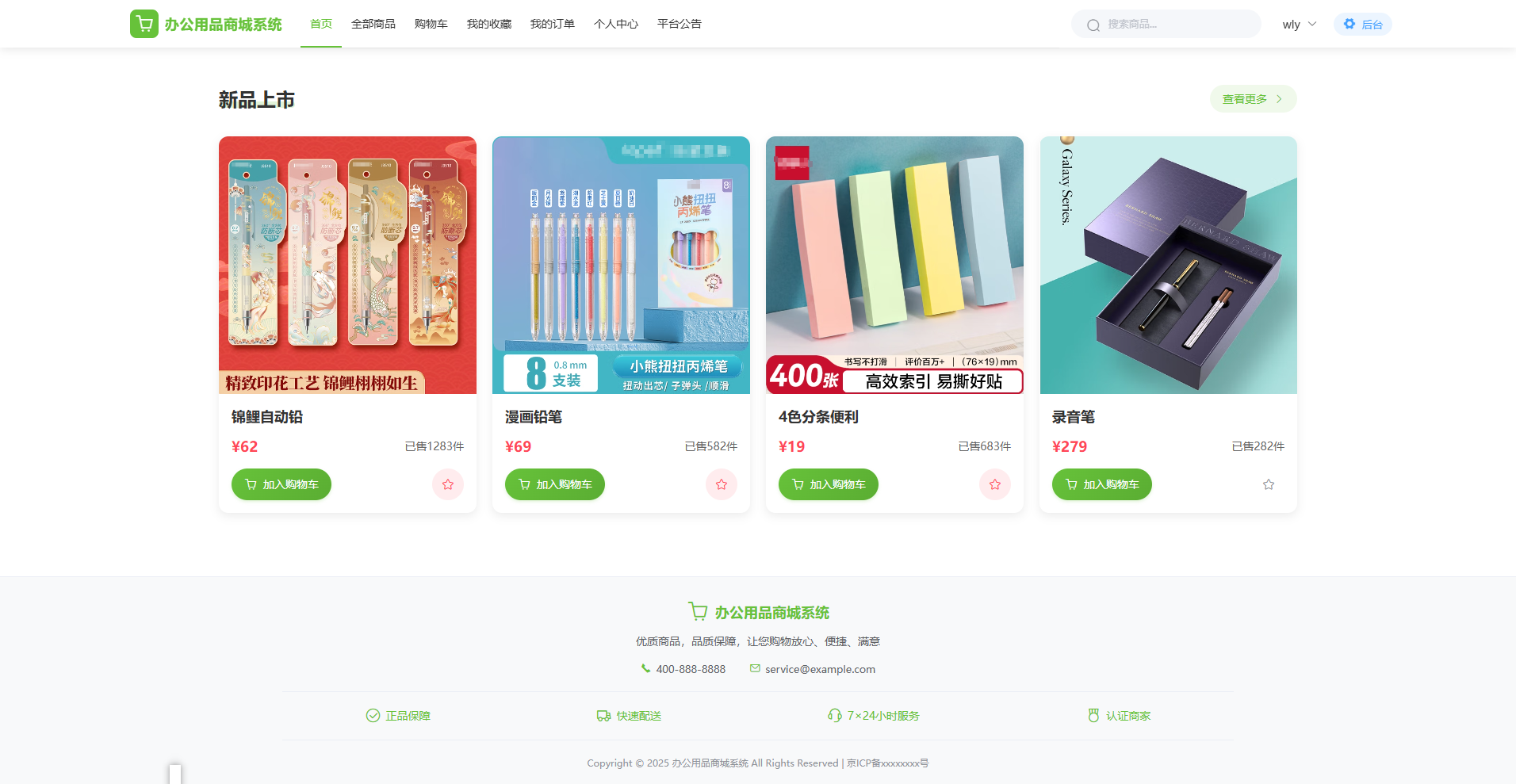 本系统专注于办公用品品类,功能聚焦、体验优良,适用于办公用品品牌商、电商创业者作为线上商城平台的开发范例,满足办公用品电商平台的多样化业务场景,具备良好的教学参考价值和商业落地潜力。