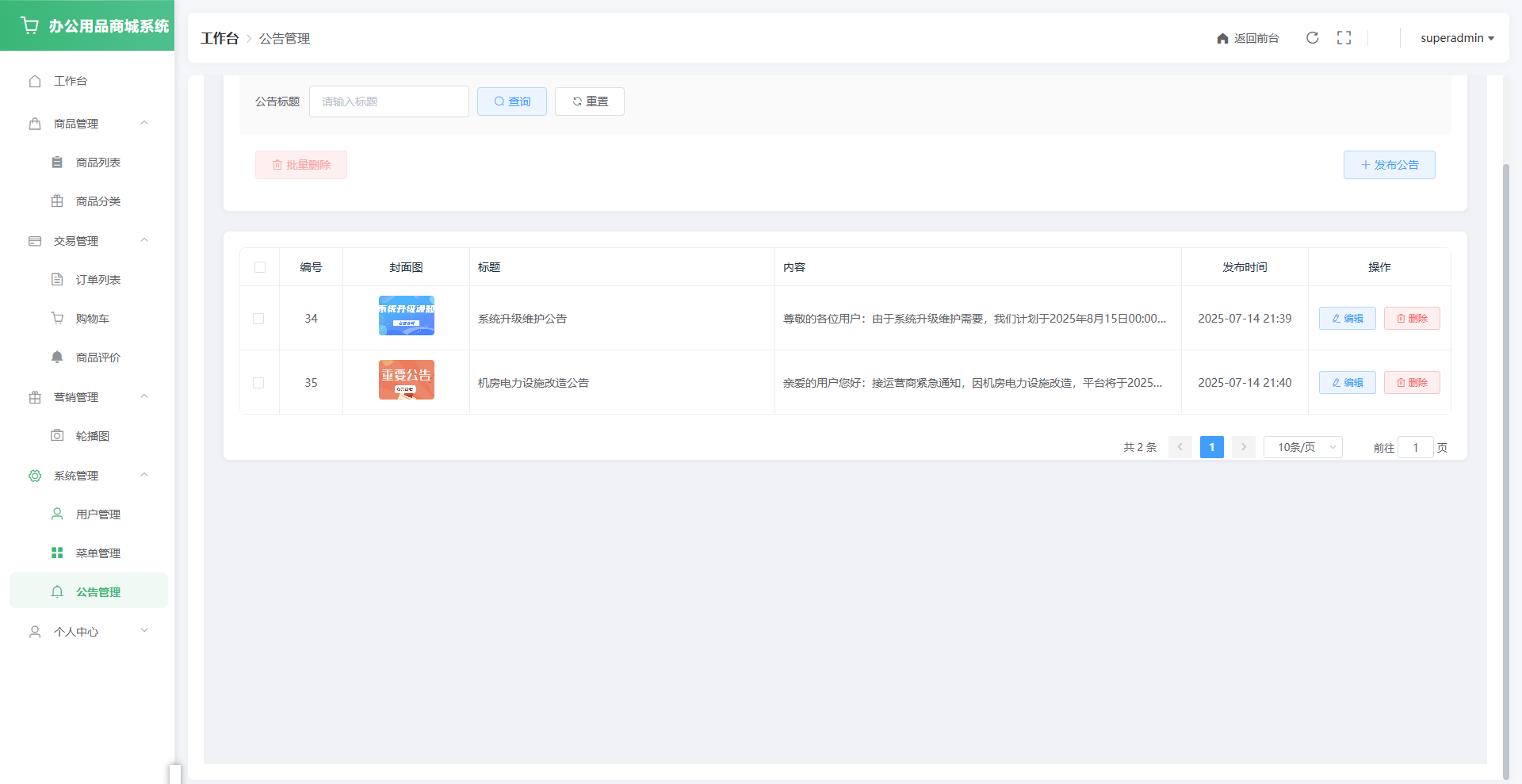 本系统是一款面向办公用品垂直领域的多商户电商平台,采用B/S架构与前后端分离开发模式,整体系统基于Spring Boot3与Vue2技术栈构建,支持浏览器访问,满足办公用品品牌线上销售、管理与服务需求。