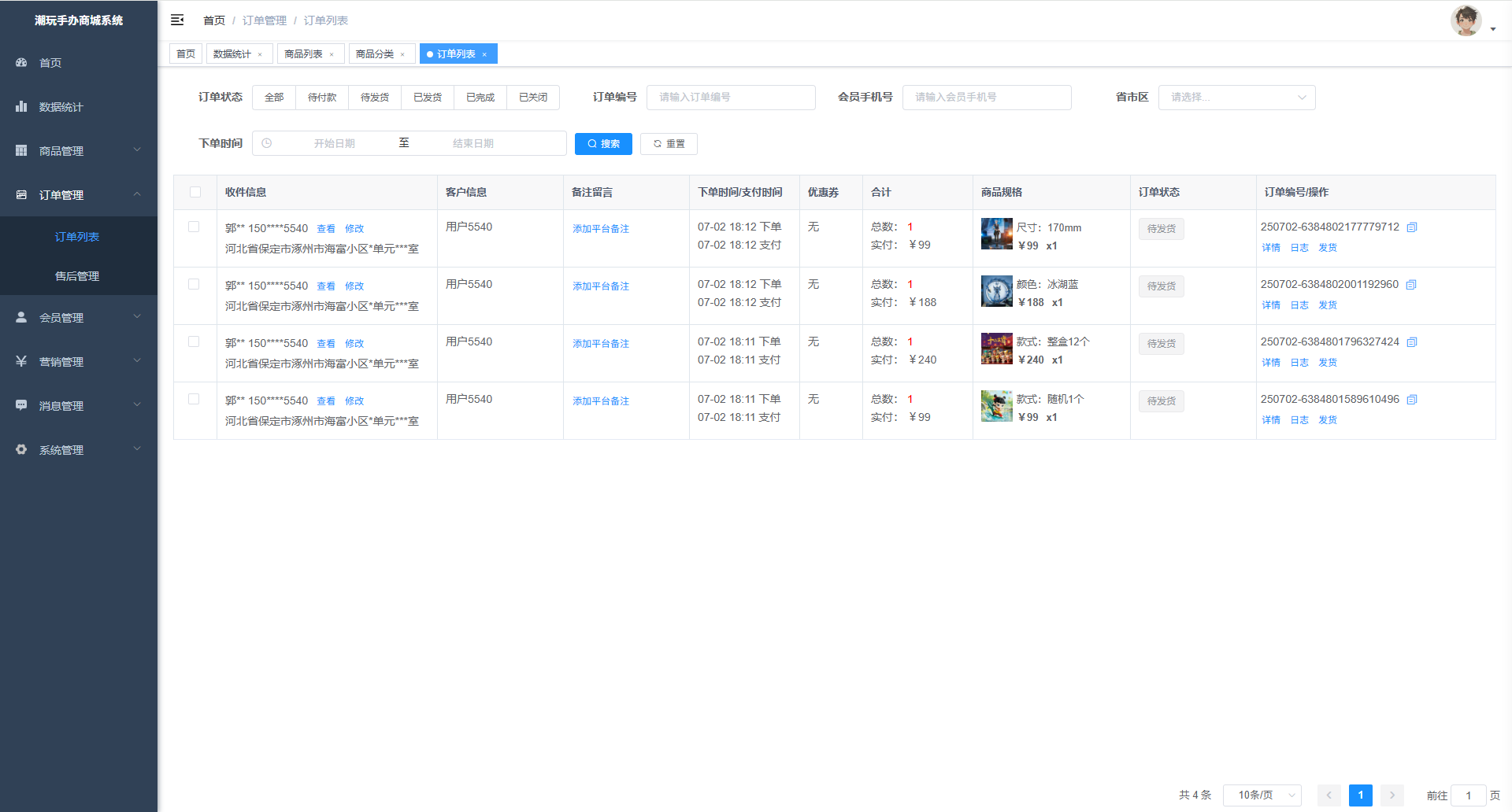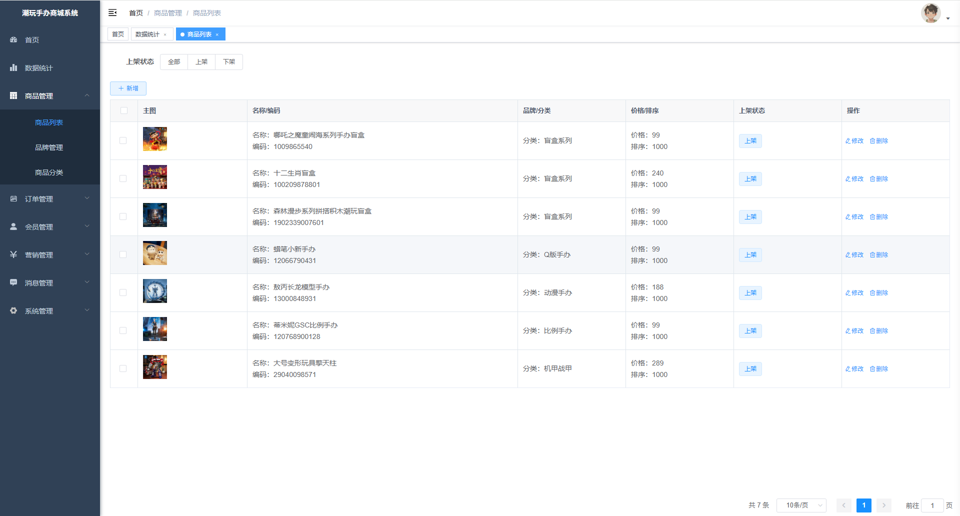 075基于SpringBoot+Vue+uni-app的潮玩手办商城系统、微信小程序潮玩手办商城系统、H5潮玩手办电商系统、B2C潮玩手办销售平台、潮玩手办类目自营商城