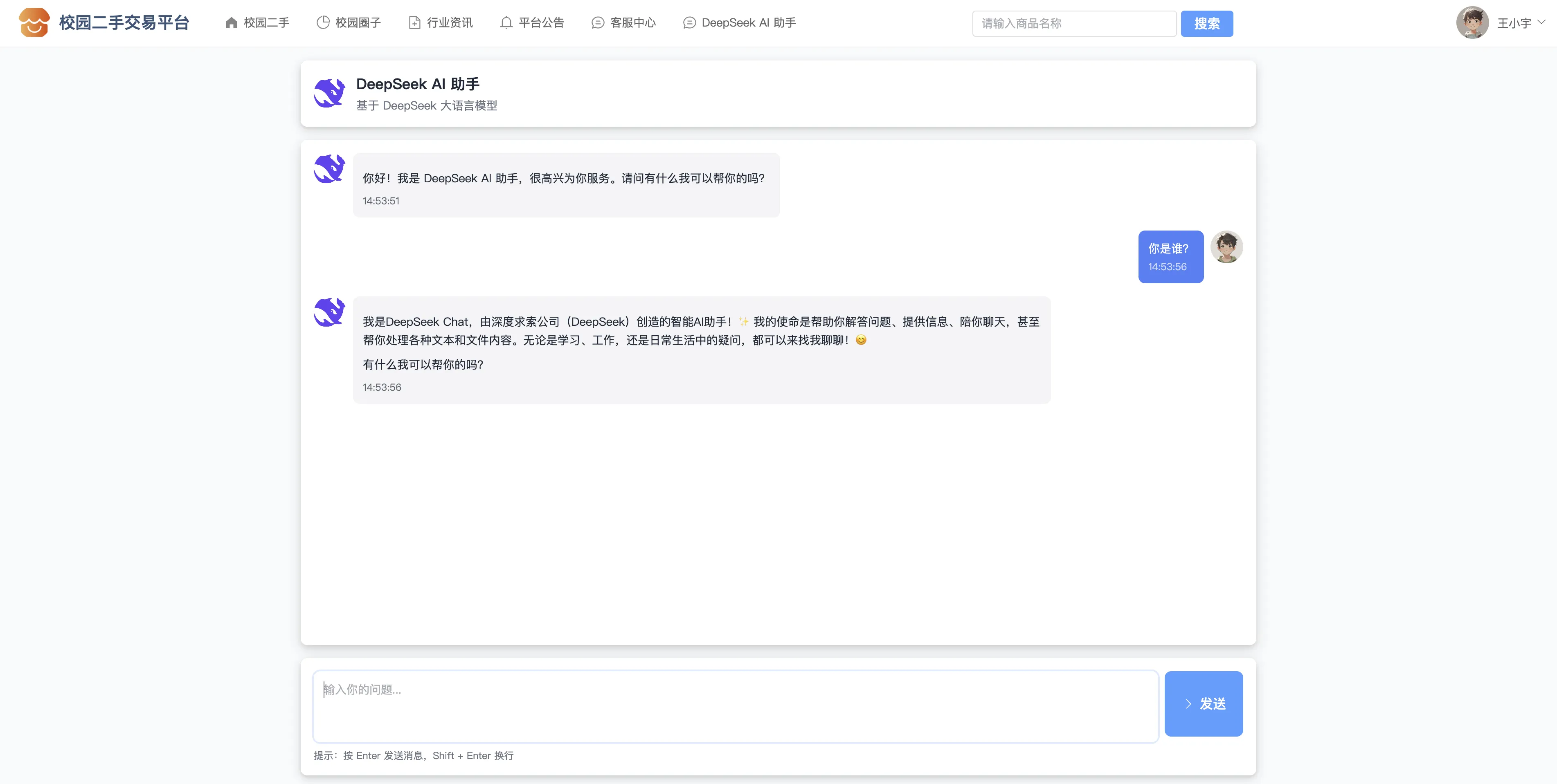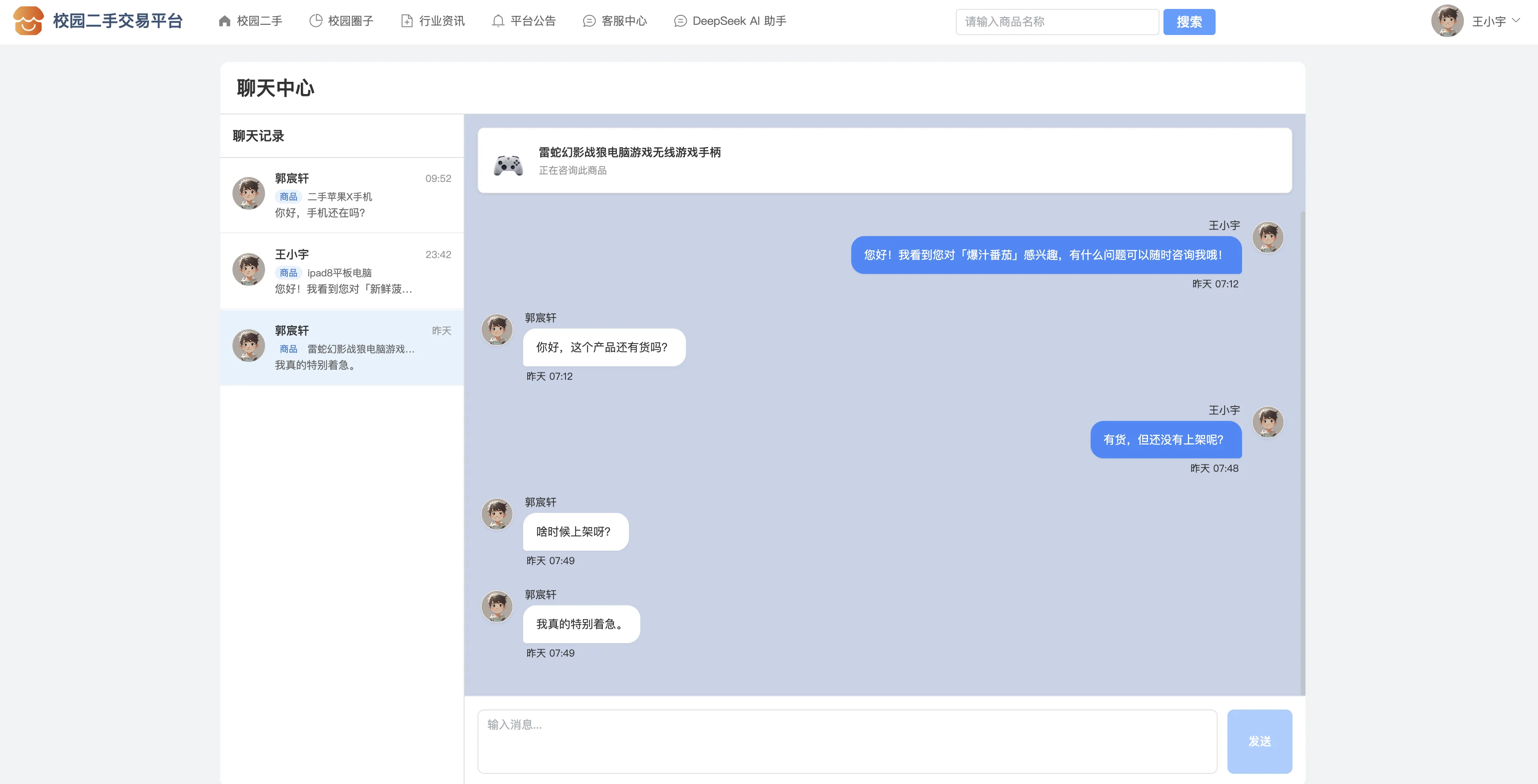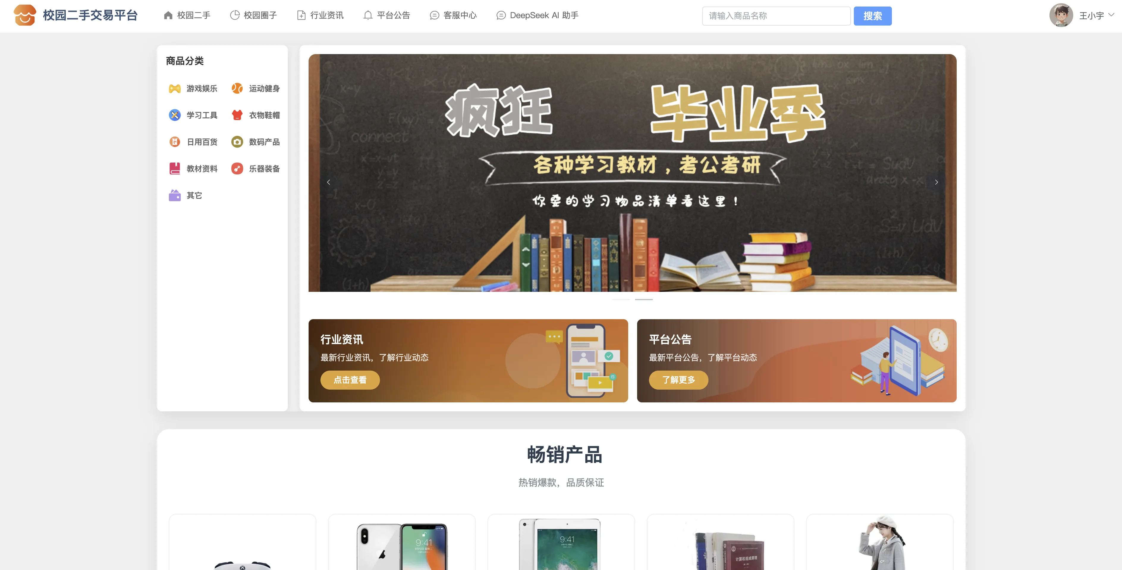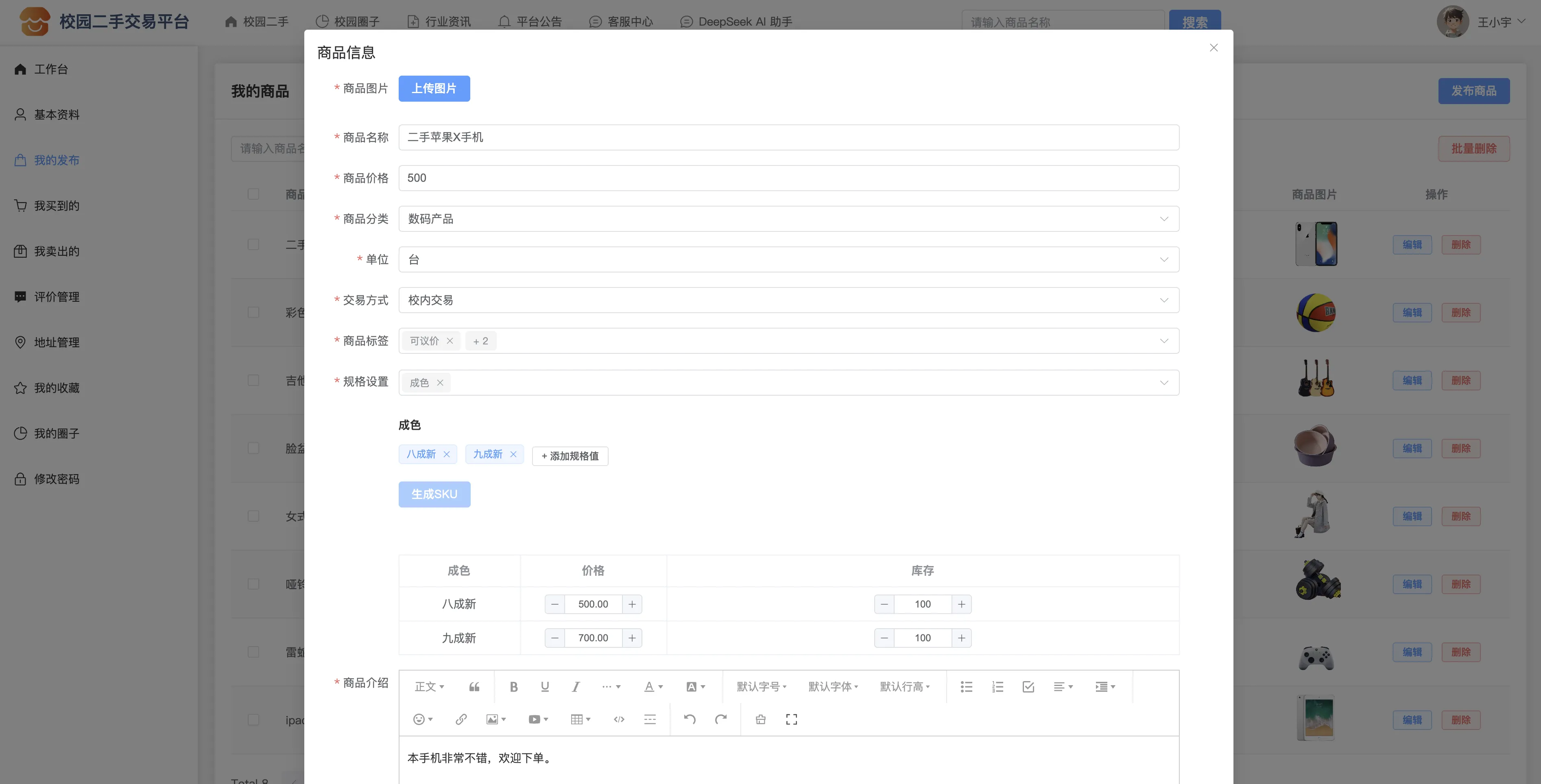 147基于SpringBoot3+Vue3的校园二手交易系统、校园二手交易平台、校园闲置物品共享系统、智能校园电商平台、校园社交交易社区系统、校园旧物互助平台、校园电商系统、协同过滤推荐算法、DeepSeek AI助手、在线客服聊天、商品多规格