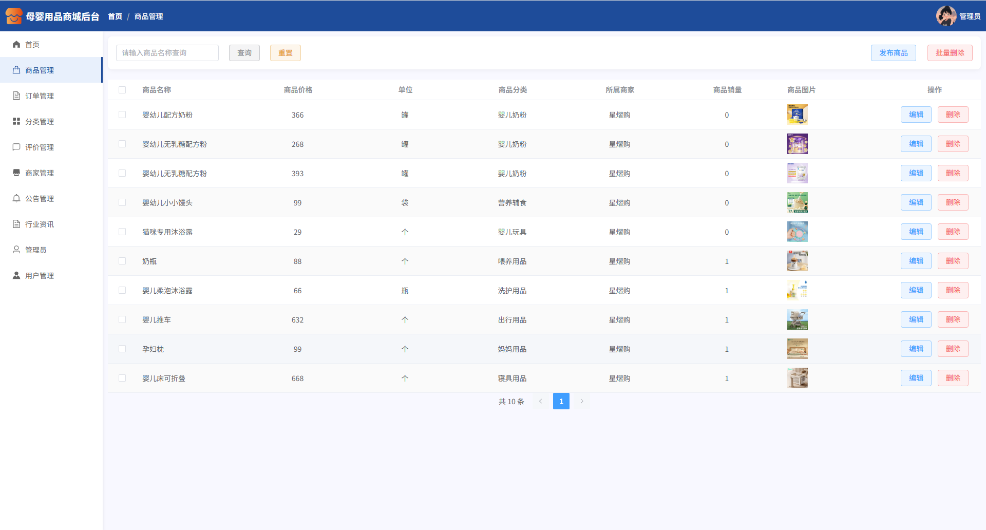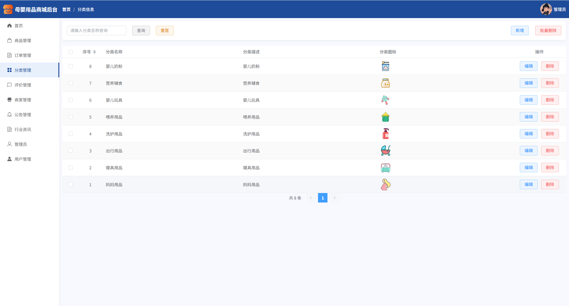 本系统是一套基于 Spring Boot3 + Vue3 技术栈开发的面向母婴用品类目垂直领域的商城系统,采用 B/S 架构与前后端分离开发模式,后端集成 JWT 认证、RBAC 权限控制,前端采用 Vue3 + Element Plus 构建,数据持久化使用 MySQL,配合 ECharts 实现可视化数据展示。系统整体采用 MVC 架构设计,结构清晰,功能模块高度解耦,支持横向扩展。