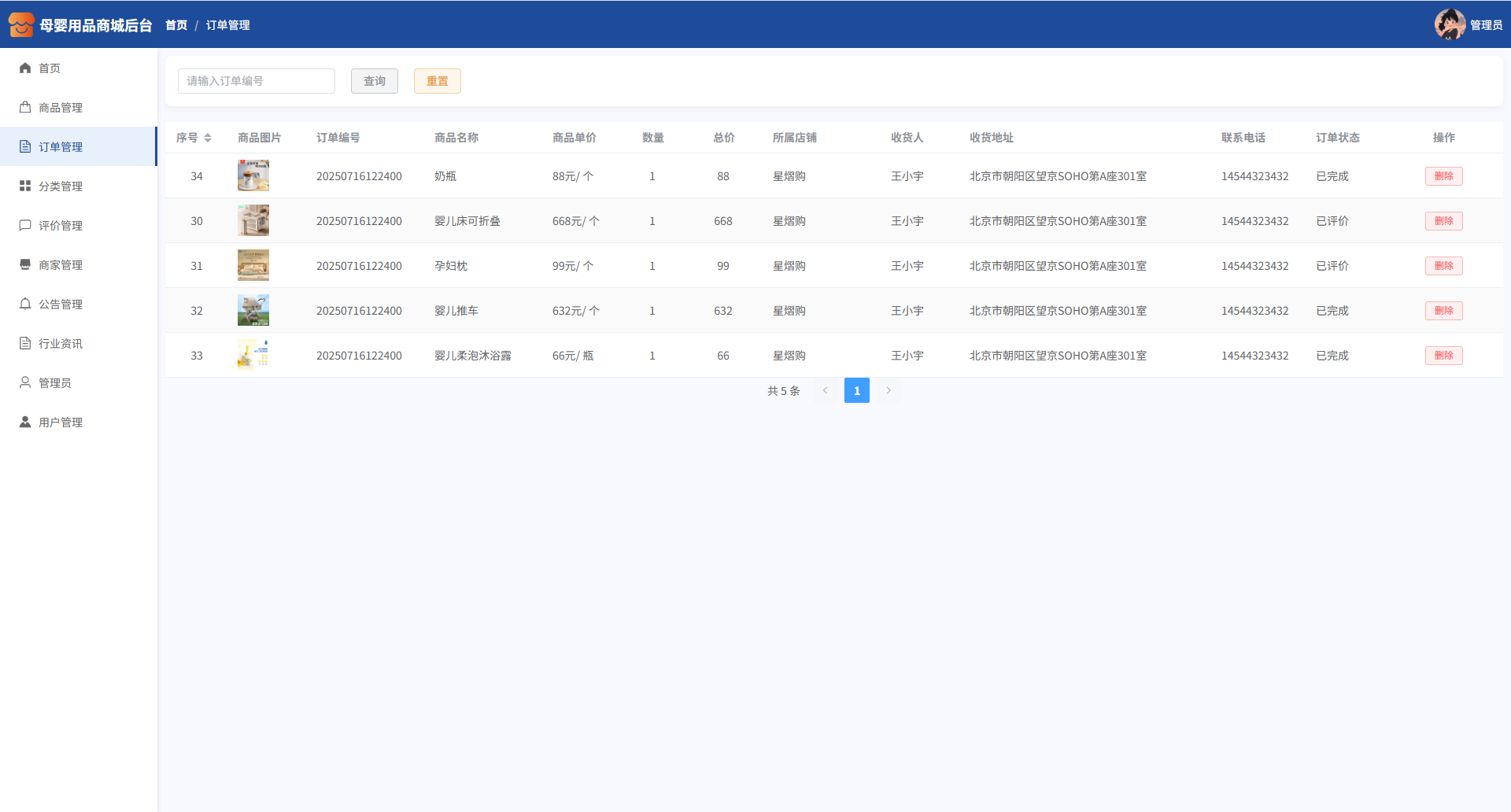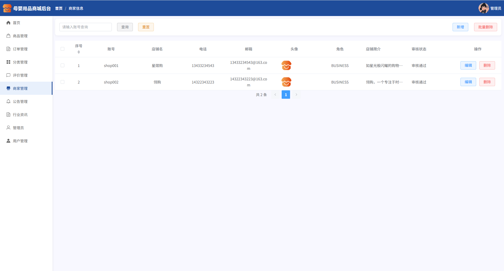 本系统支持用户、商家、管理员三种角色,功能划分明确,业务逻辑完善: